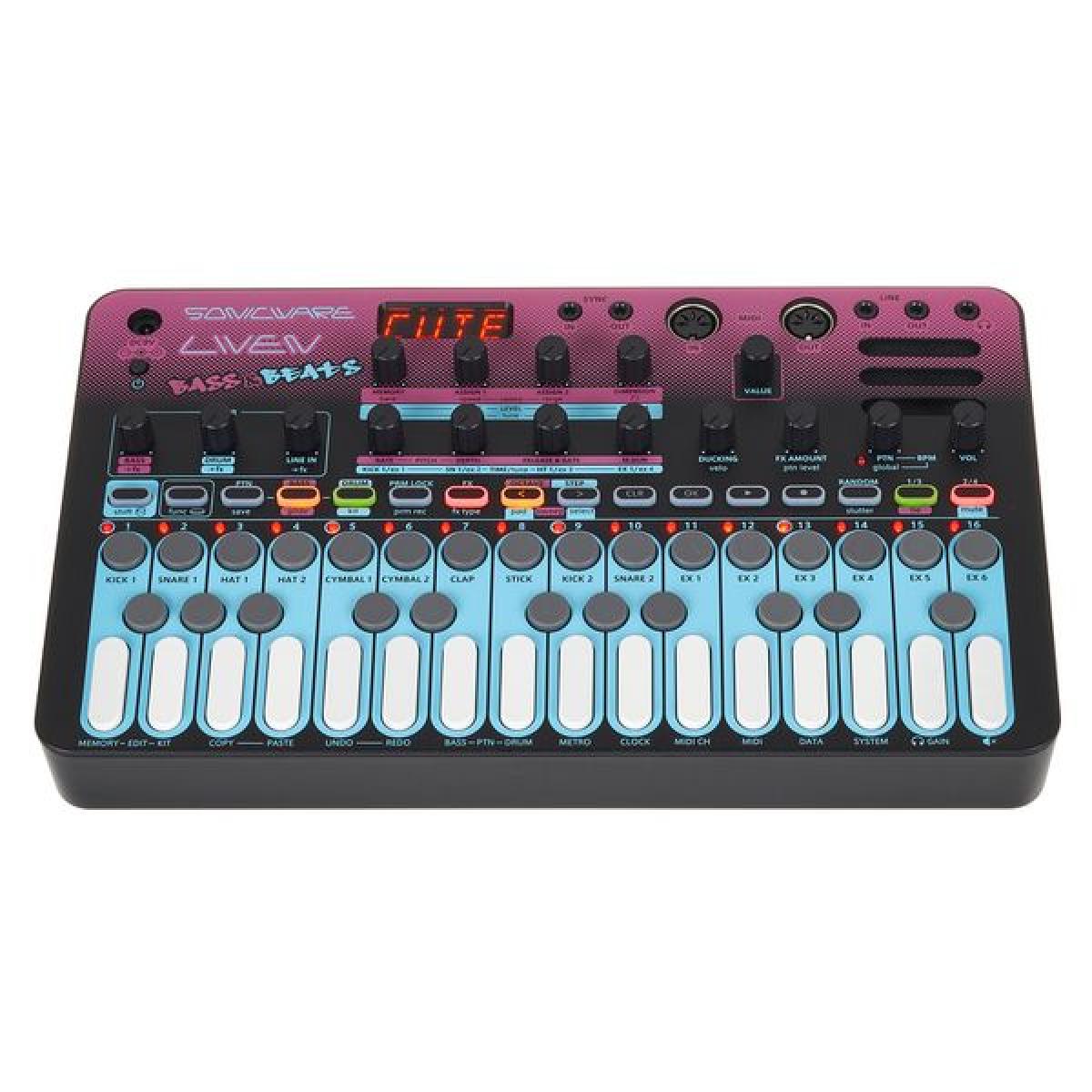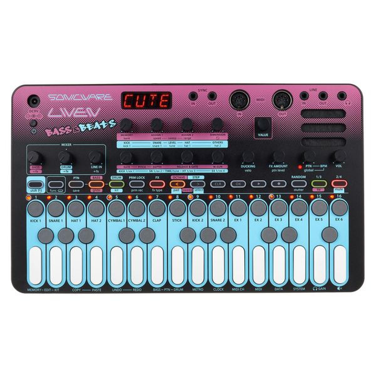 • LFO, gerador de envelope, controlo de uníssono, filtro multimodo, efeitos de distorção;