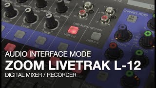 A Zoom LiveTrak L-12 é uma poderosa consola de mistura digital de 12 canais acompanhados de uma mistura stereo e 5 canais de mistura de auscultadores personalizáveis. A mesa de mistura Zoom LiveTrak é ideal para atuações ao vivo e podcasts; proporcionando todos os meios para gravar até 12 canais de uma vez. A Zoom L-12 também oferece uma fidelidade de áudio excecional graças à taxa de amostragem de 24 bits/96 kHz, capturando todas as nuances da sua atuação em grande detalhe. Também pode guardar projetos diretamente num cartão SD para uma maior comodidade. A mesa de mistura L-12 inclui controlos de estilo analógico e um equalizador mid paramétrico de 3 bandas, assim como 16 efeitos "send" integrados.