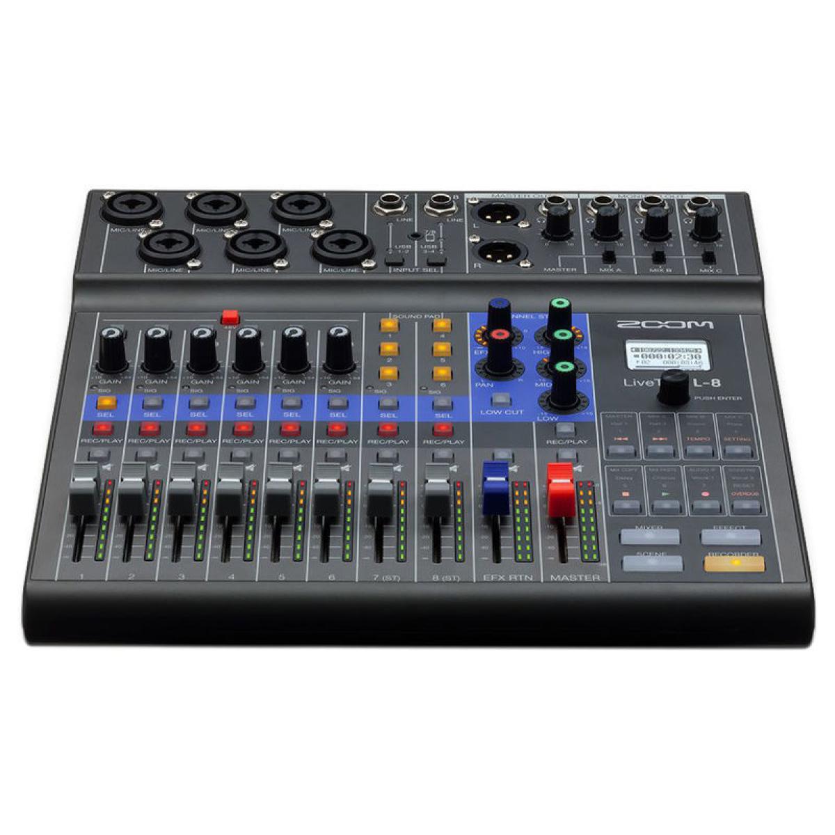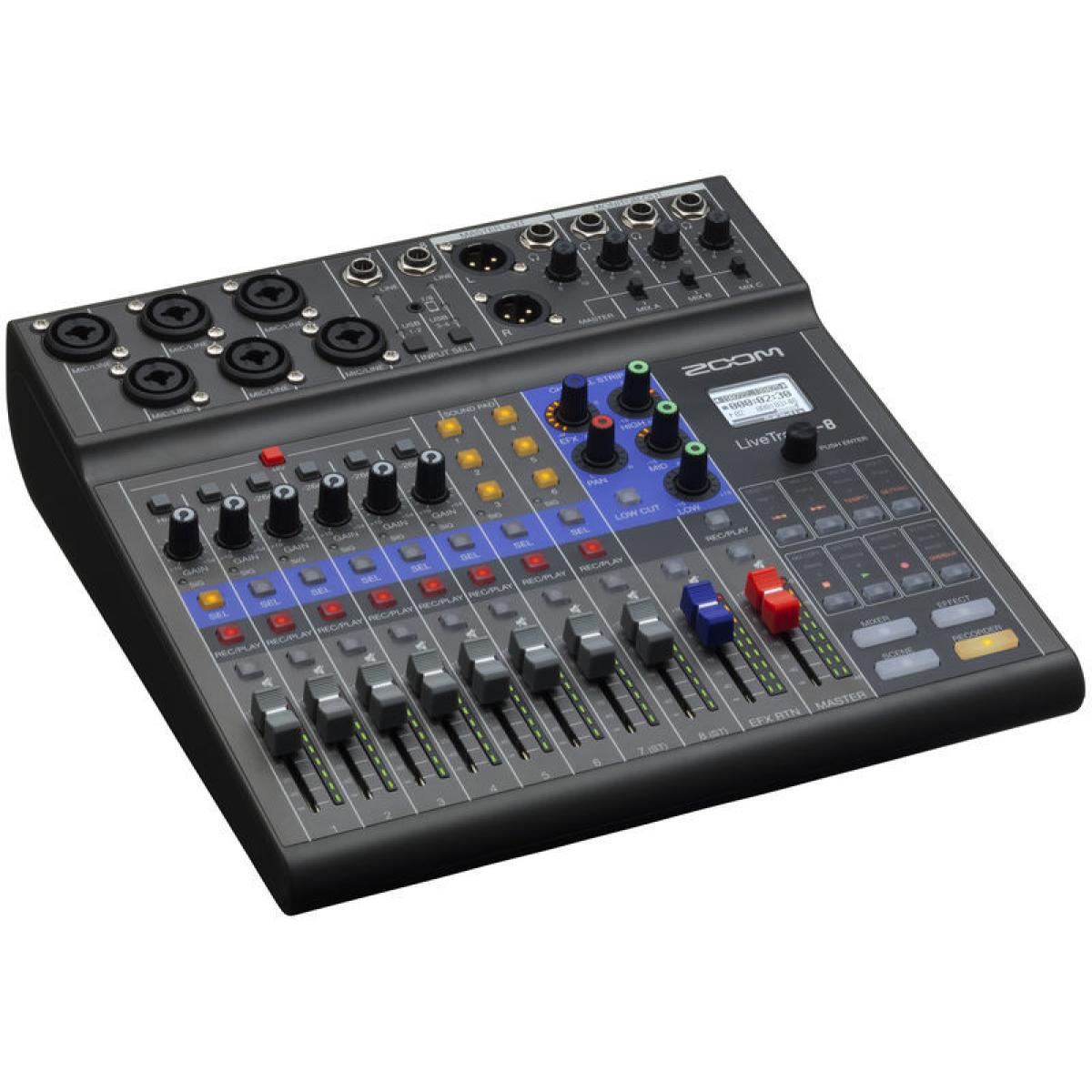 O LiveTrak L-8 é um mixer de 8 canais com a capacidade de gravar até 12 faixas simultaneamente. O LiveTrak é altamente adequado para transmissão live vivo, com recursos como a função Mix-Minus, que impede o retorno de áudio dos convidados por discagem. Ele ainda possui uma conexão TRRS para conectar telefones diretamente ao mixer, permitindo entrevistar os chamadores no ar.