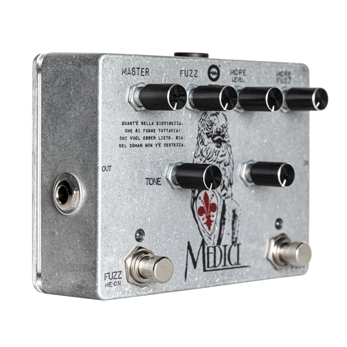 • Medici é um pedal fuzz inovador que permite ajustar a distorção em várias combinações e misturá-la com o sinal de entrada. ;
