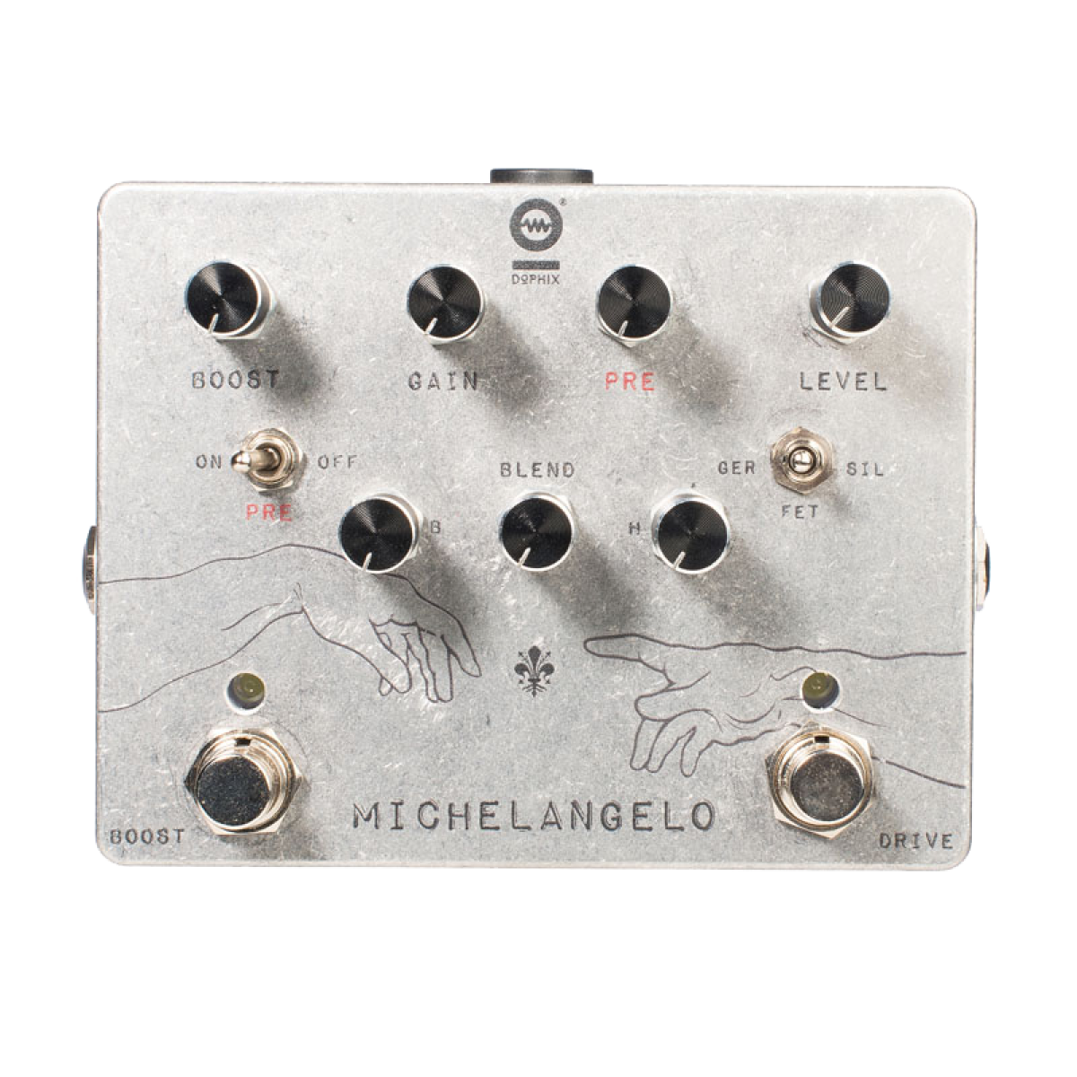 • O seletor SIL / GER / FET atua na secção DRIVE do Michelangelo, modificando o seu modo de distorção. ;
