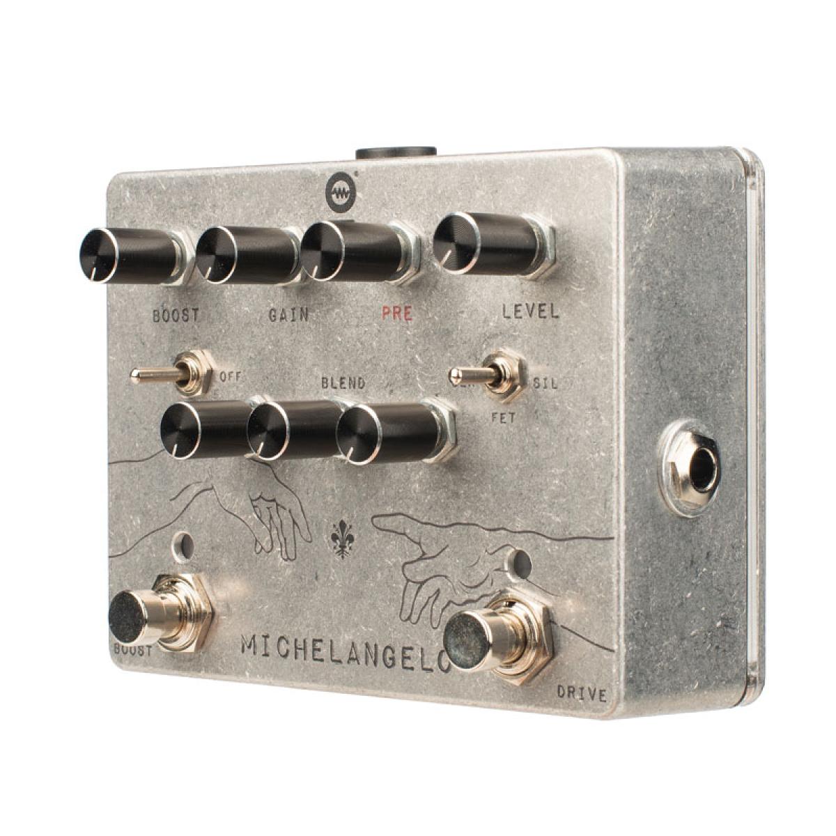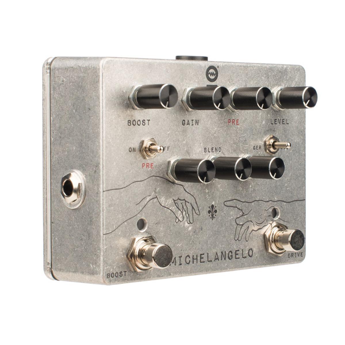 • A possibilidade de escolher o tipo de distorção torna o Michelangelo extremamente flexível, com distorções que oferecem toda a gama, desde um boost, passando por um crunch leve, até um overdrive e uma distorção muito definida, típica da produzida por um amplificador valvulado. ;