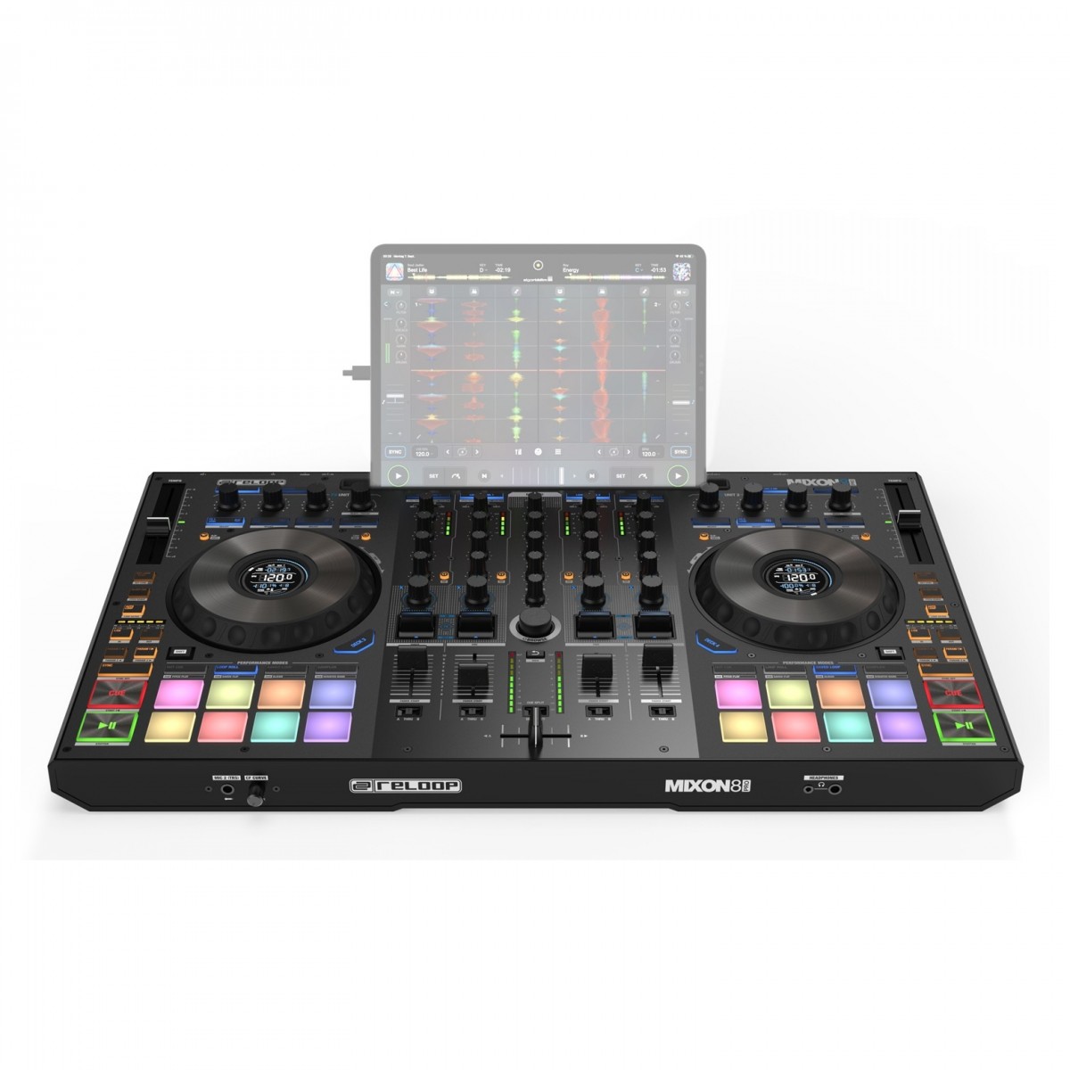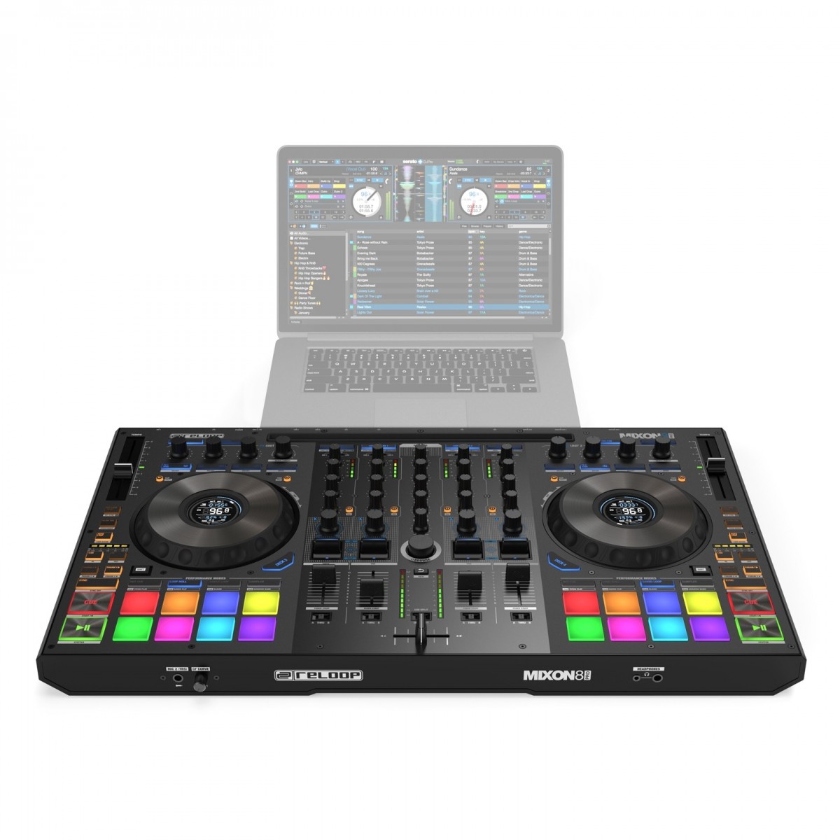 Com base no sucesso do controlador Mixon 4 DJ, o Mixon 8 Pro leva tudo para o nível seguinte em termos de design e funcionalidade. Uma das actualizações mais proeminentes são as novas e melhoradas jog wheels - agora com exibições em tempo real no centro das mesmas. Os pratos de metal sensíveis ao toque asseguram a máxima precisão quando se trata de seguir os seus movimentos, permitindo-lhe controlar a sua música com a máxima precisão. Os novos ecrãs de jog wheel fornecem informação sobre o nome da pista, BPM, o resto/elapso da pista e até uma iluminação virtual de necessidade para que possa verificar as suas pistas num relance.