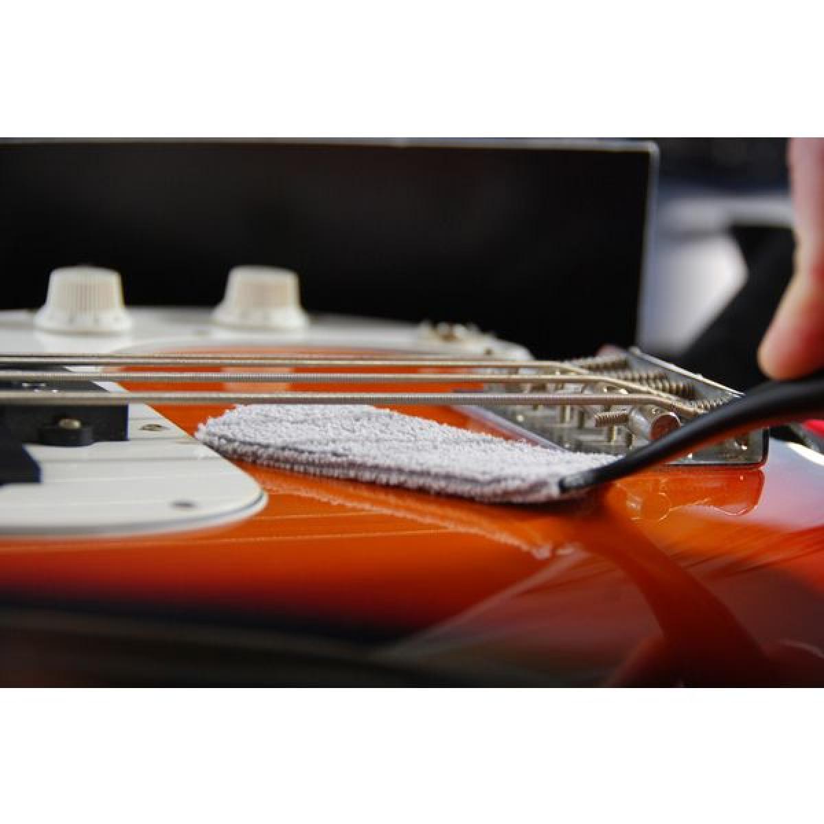 • Limpa acima e abaixo das cordas da guitarra ;