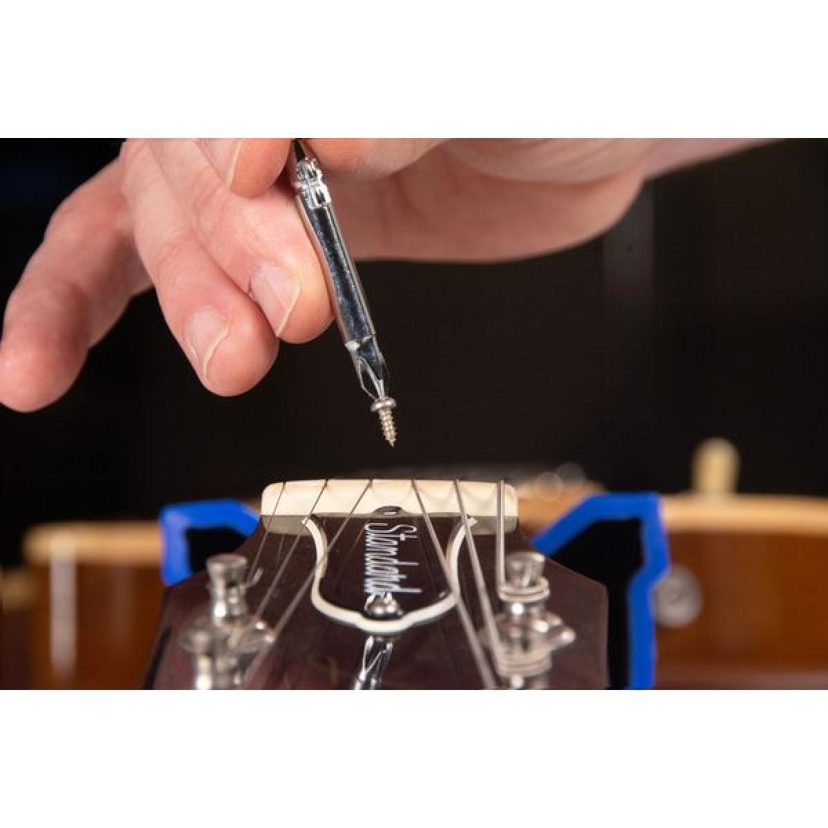 • A chave para truss rod e a ferramenta para rodas de raios encaixam-se na alça MusicNomads The Octopus para maior alavancagem e conforto;