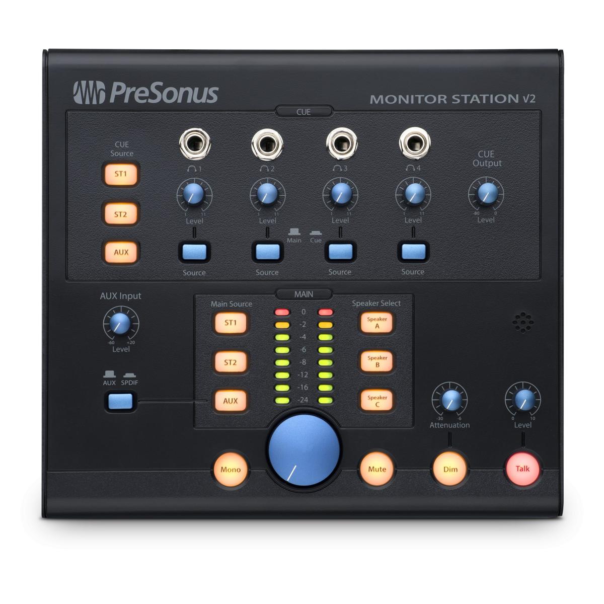 • Built-in electret-condenser talkback microphone with input-gain control and Talkback button
