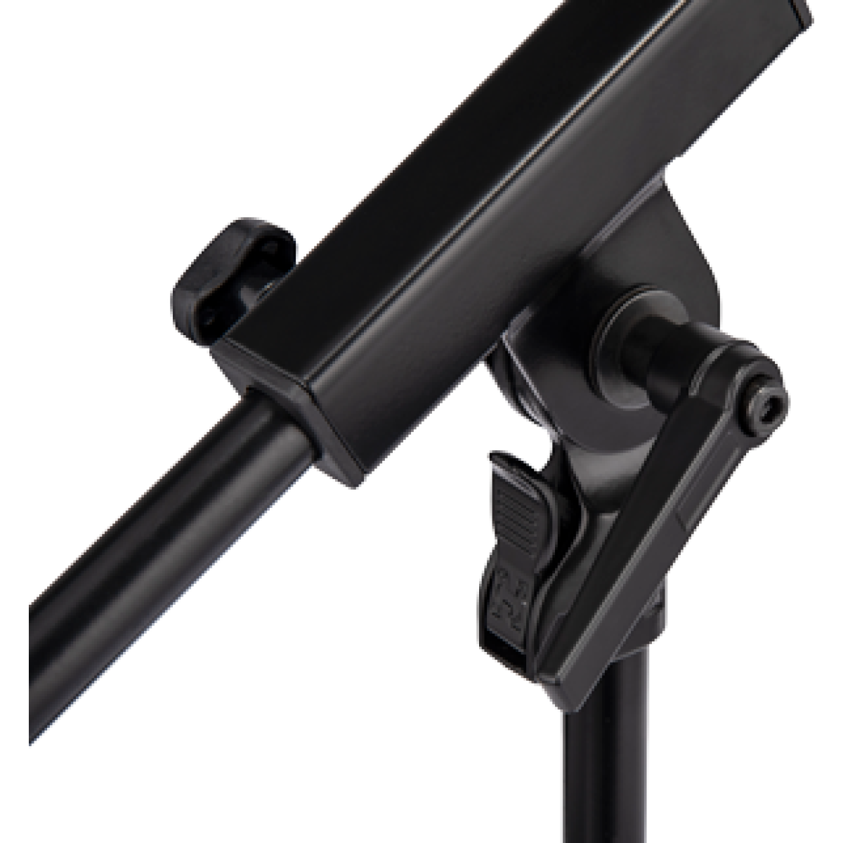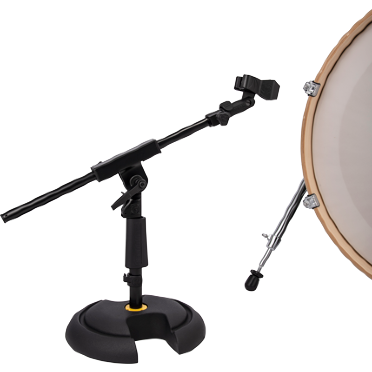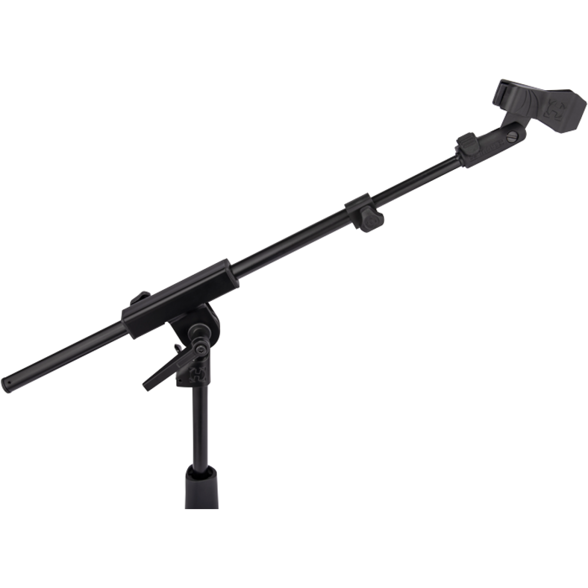 • Ajuste de altura de baixo perfil com braço da haste telescópico curto que economiza espaço para microfonar bumbos, caixas, tons de chão, amplificadores e muito mais;