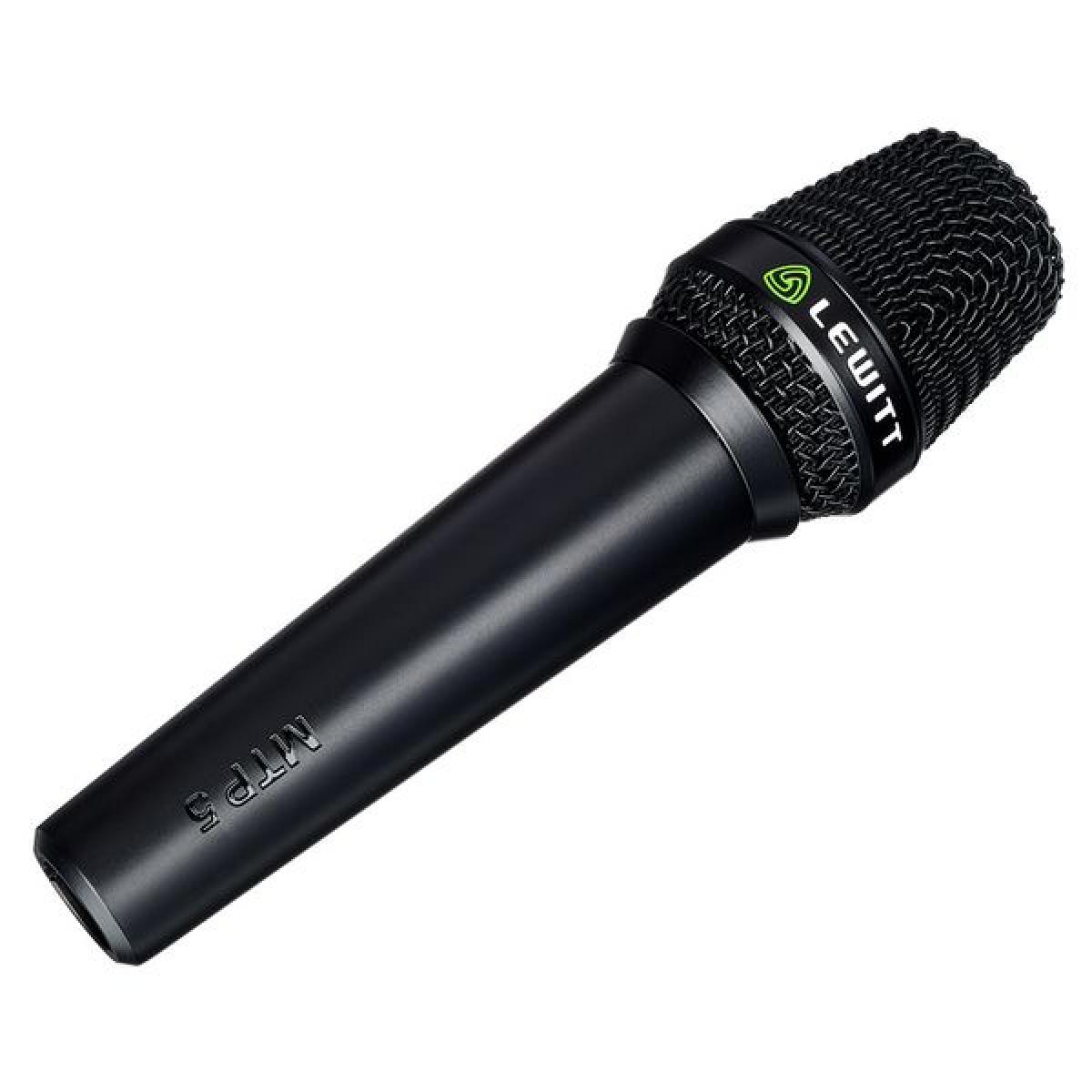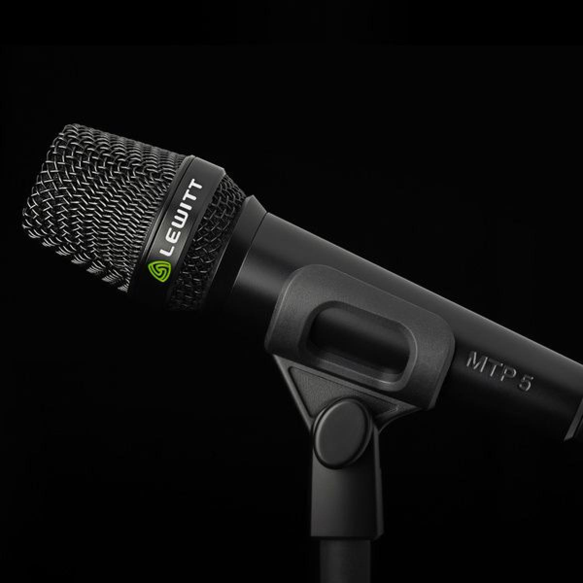 Microfone dinâmico vocal Lewitt MTP 5 com padrão polar cardioide, concebido para performances ao vivo, estúdio e aplicações de voz com grande clareza e rejeição de ruído.