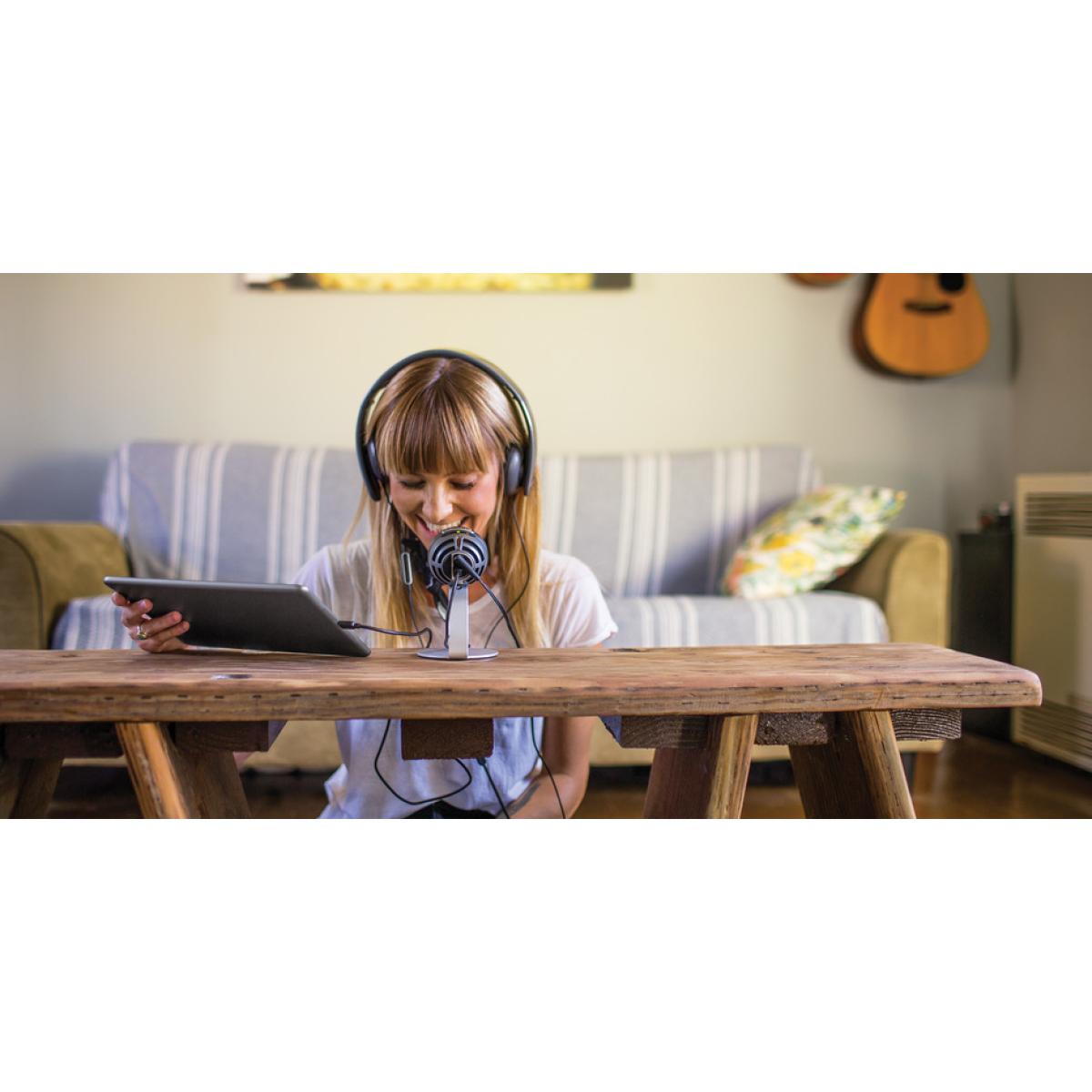 O MV5 possui uma saída de auscultador embutida. Você pode monitorar diretamente o microfone e a saída do seu computador precisamente ao mesmo tempo. Não há delay entre sua apresentação e o que você ouve. Assim, você pode gravar sem distração.