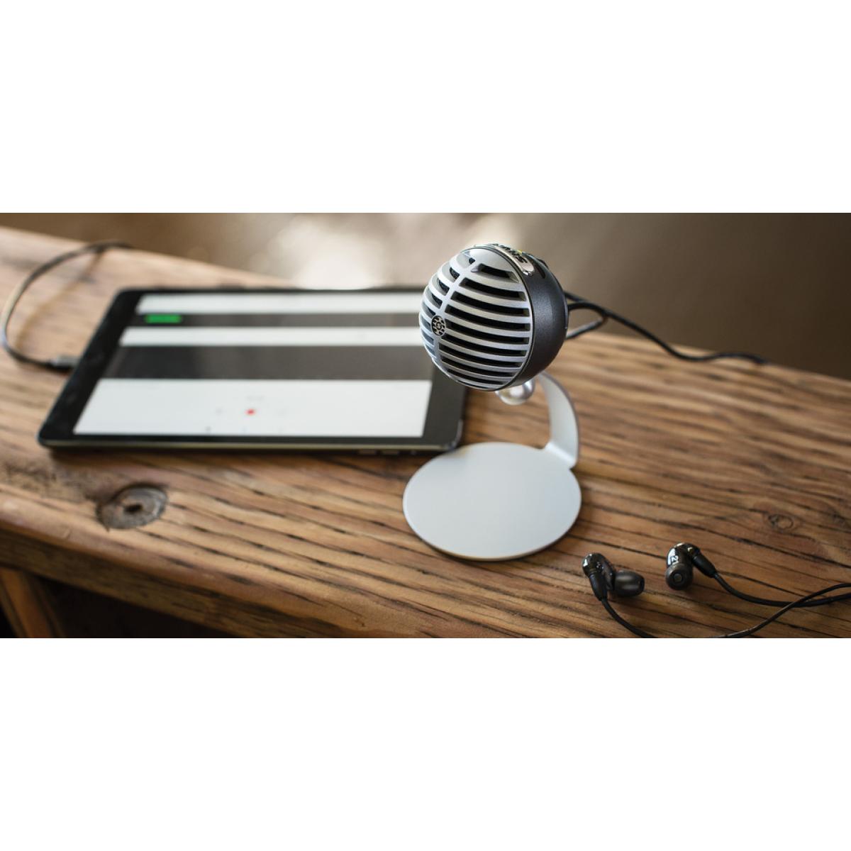 Simplicidade e sofisticação. O MV5 é um caso com mais classe do que um microfone USB comum. Com seu design de bola elegante e suporte de mesa sofisticado, ele ficará próximo ao seu Mac ou PC com estilo. Você também pode gravar com seu dispositivo iOS usando o aplicativo gratuito ShurePlus. Você é livre para criar conteúdo em qualquer lugar.