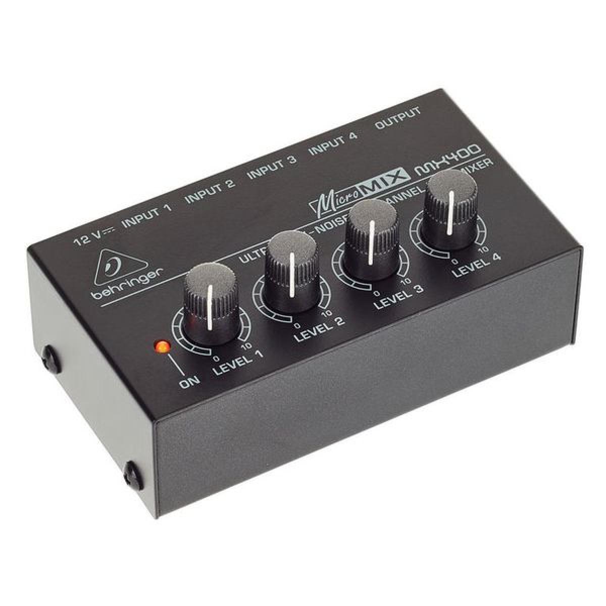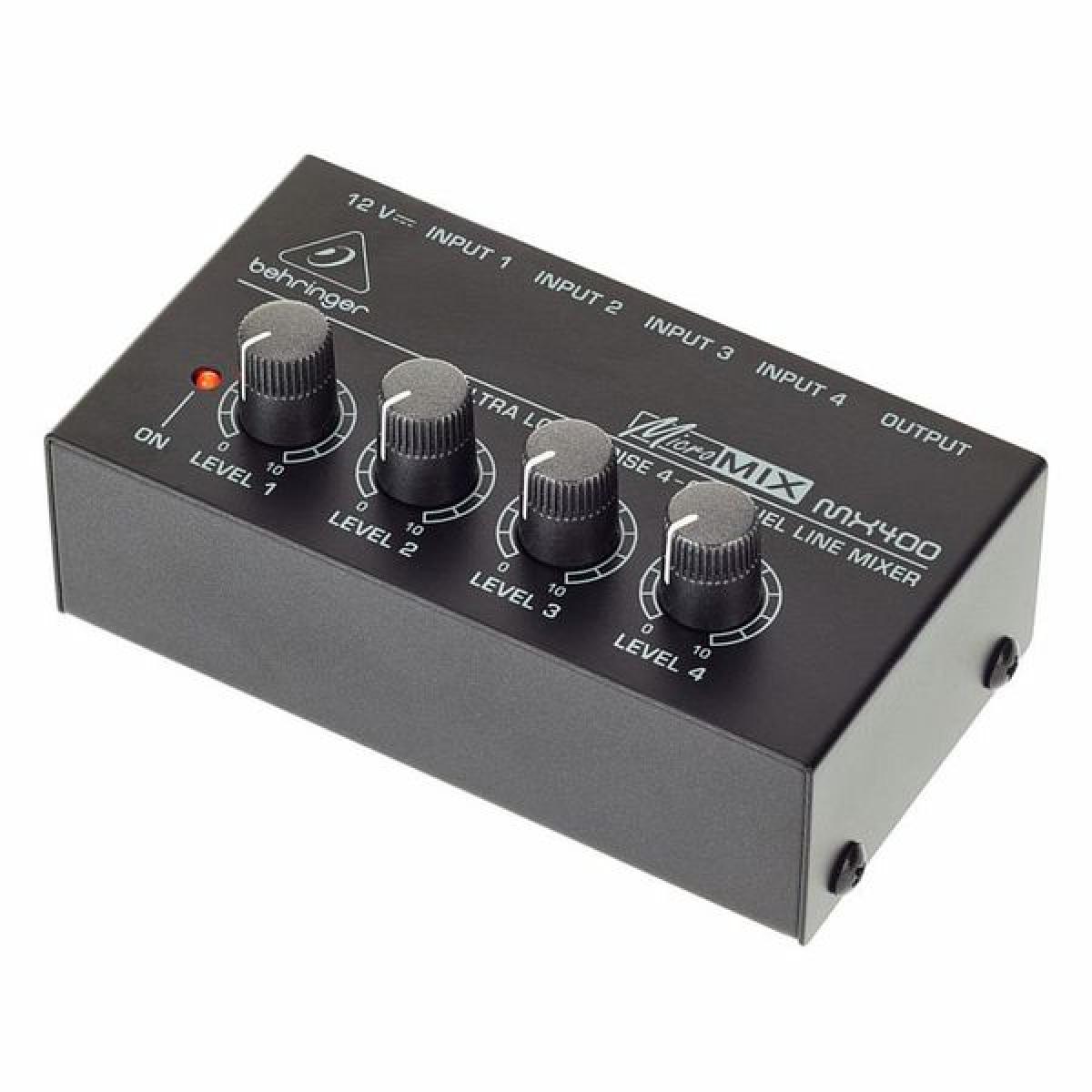 Apesar do seu tamanho ultra-compacto, a mesa de mistura de 4 canais MICROMIX MX400 é realmente grande em características! Proporcionando a mais alta qualidade sónica em todos os níveis de saída em comparação com a concorrência, o MX400 possui amplificadores operacionais 4580 de ruído ultra baixo para um desempenho áudio excecional - os mesmos chips que se encontram nas suas mesas de mistura muito maiores. Utilize o MX400 como um sub-misturador para a sua mesa de mistura: Se estiver a ficar com poucos canais disponíveis na sua mesa de mistura "grande" e precisar de adicionar mais 3 teclados à sua mistura, basta ligá-los ao MX400, marcar a mistura - e ligar a saída do MX400 a uma única entrada na sua mesa de mistura principal. Desta forma, tem a oportunidade de misturar o seu teclado com o MX400, sem ocupar imediatamente vários canais valiosos da mesa de mistura.