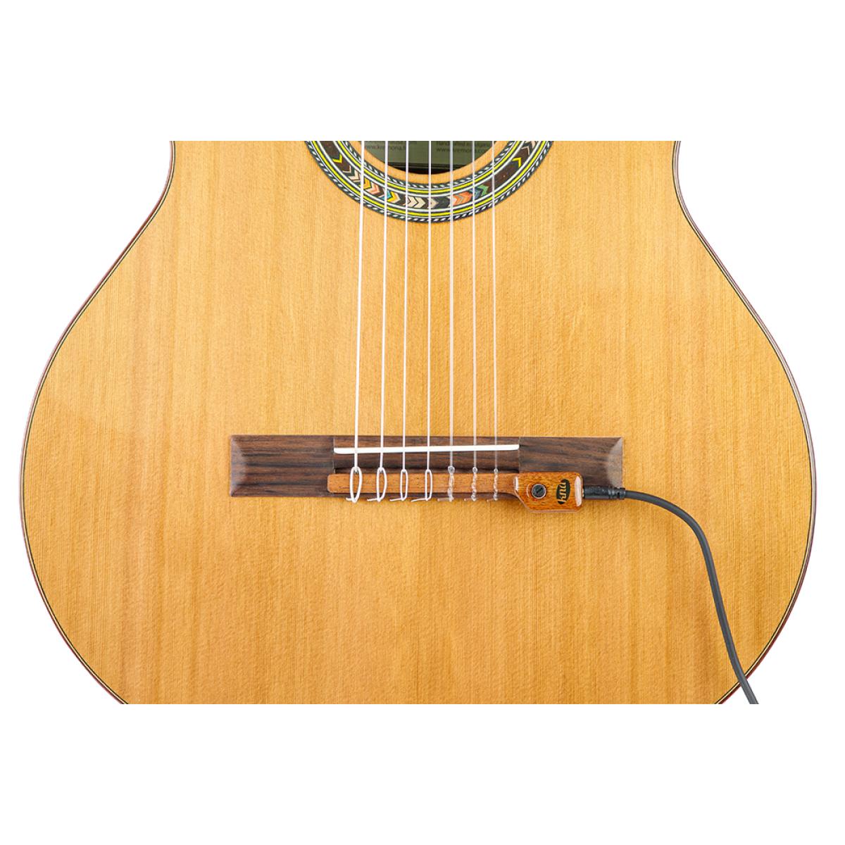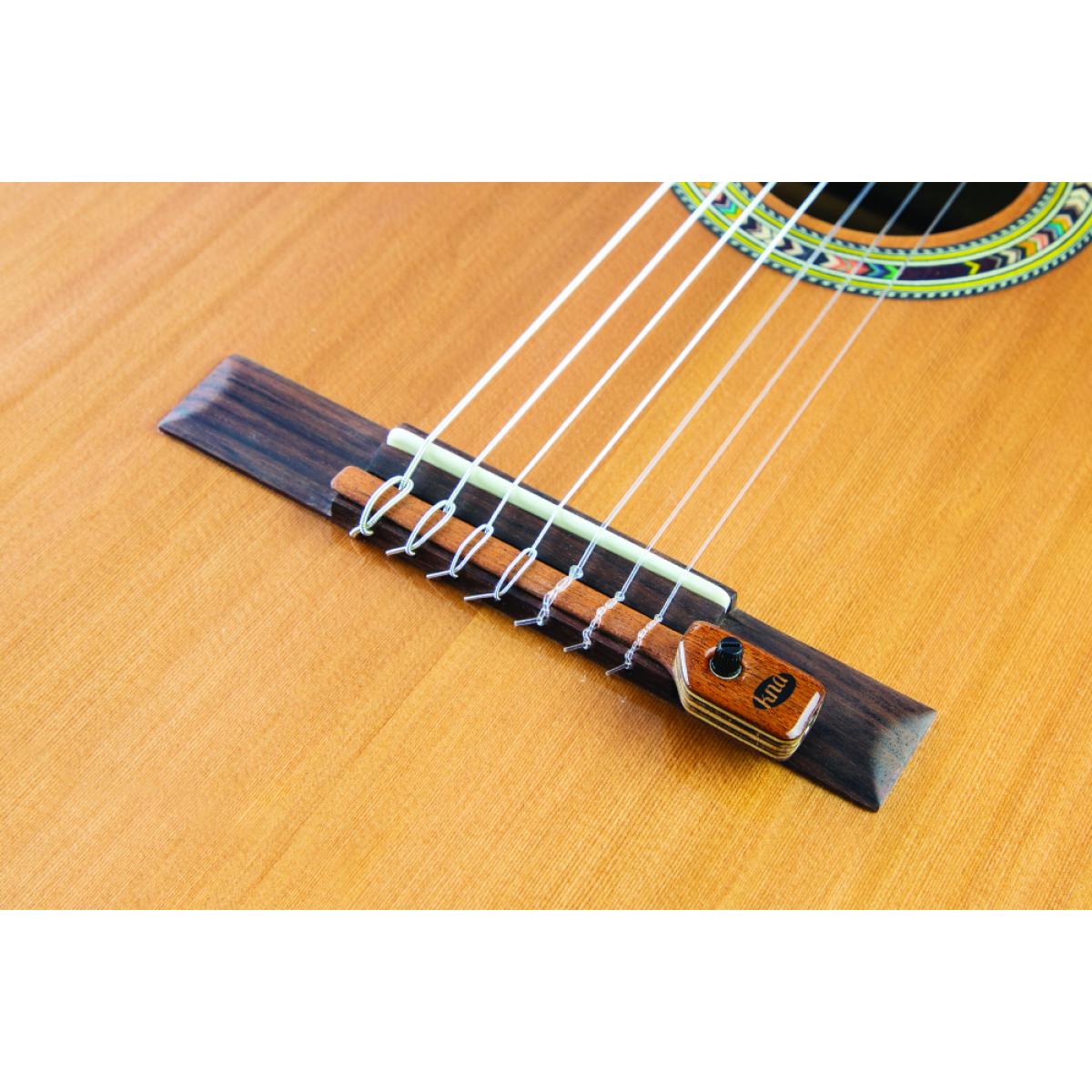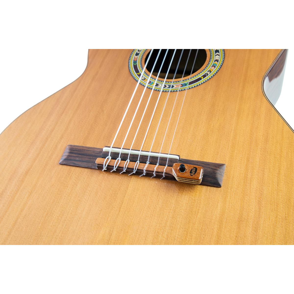 • Instalação sem modificações :Ao contrário de outros captadores de guitarra, o NG-2 7S instala-se de forma segura no bloco de cordas da guitarra clássica ou flamenca de 7 cordas, utilizando a tensão das cordas.