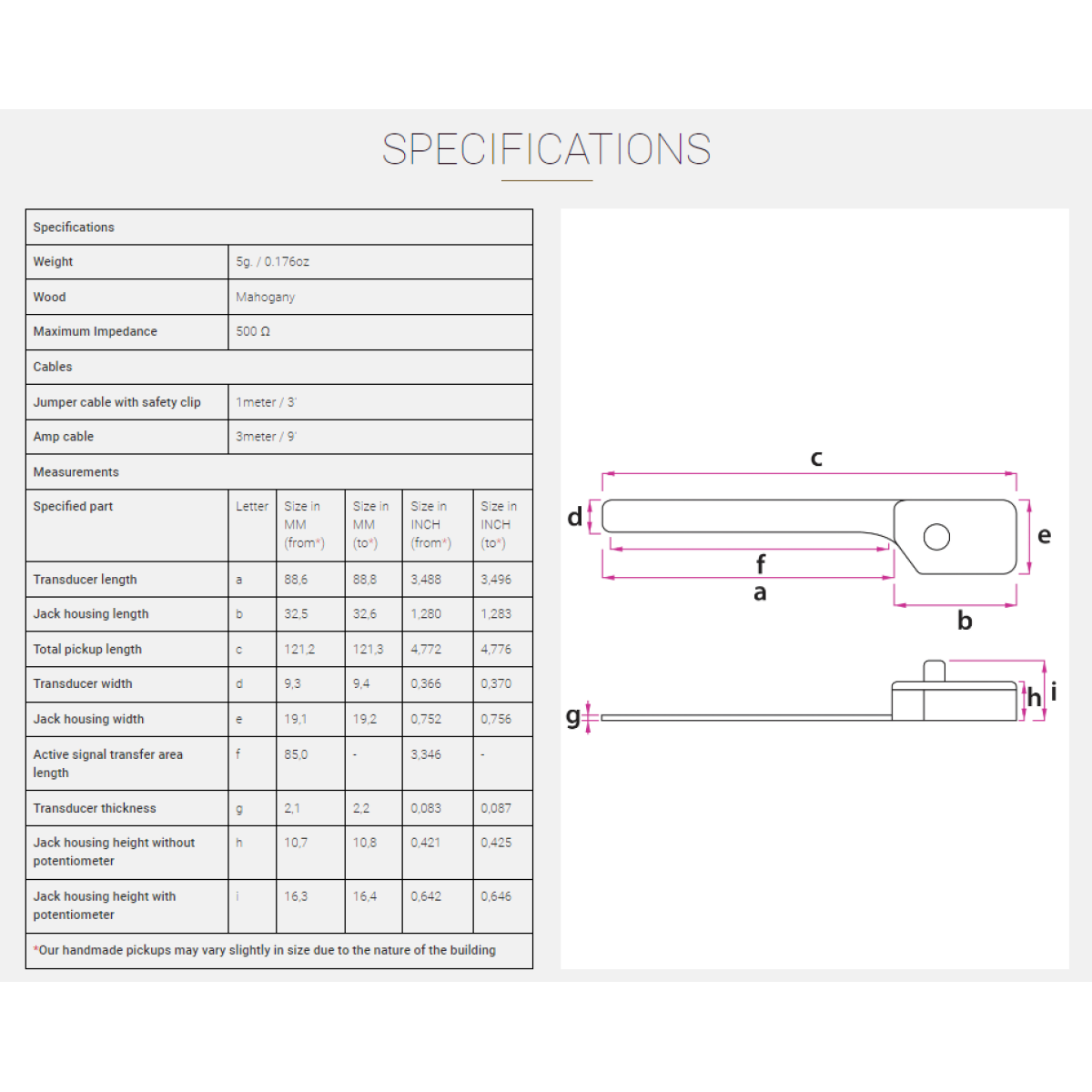 • Caixa de madeira: O elemento piezoelétrico é revestido em mogno elegante e com estilo. O conjunto leve oferece a máxima sensibilidade tonal.