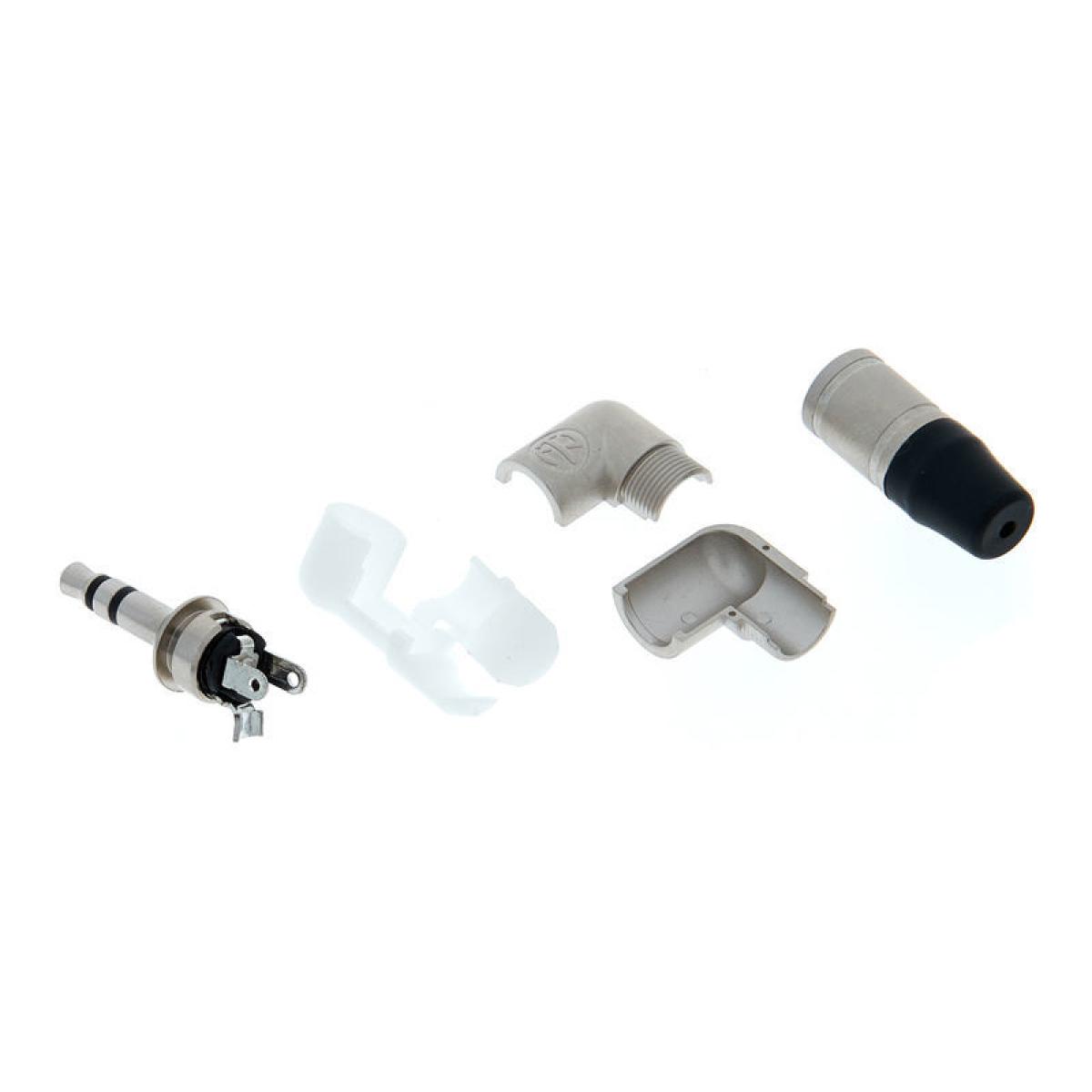 O NTP3RC da Neutrik é um plugue macho de áudio de 3,5 mm em ângulo reto de 3 polos com carcaça de níquel e contatos de níquel. Este plugue jack com alívio de tensão tipo mandril adequado para retenção segura do cabo. Aceita cabos de 2mm a 4,5mm.