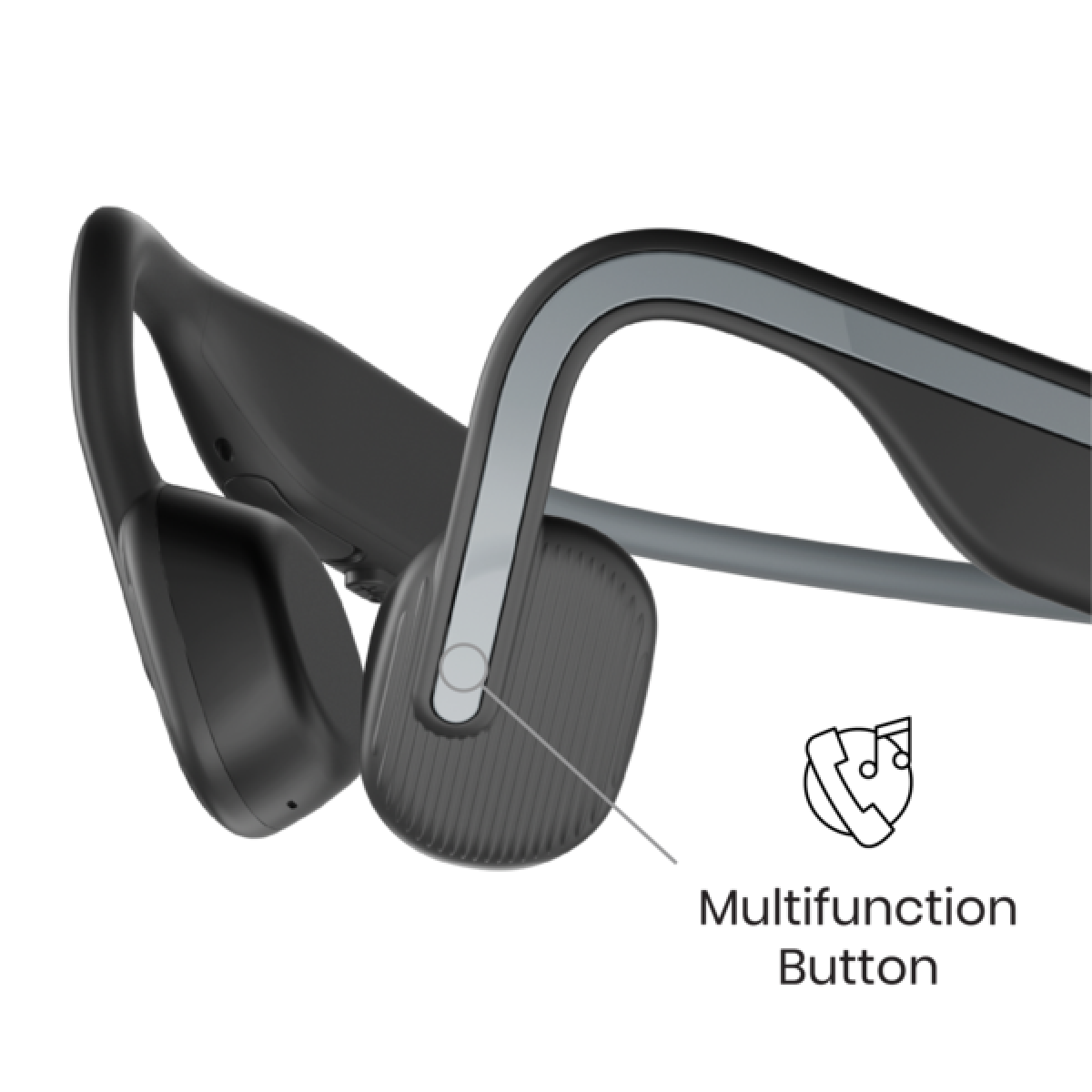 Inspirado em atletas, projetado para todos. Nosso design de ouvido aberto alimentado pela tecnologia de condução óssea permite a total consciência do ambiente e da escuta confortável e sem botões.
