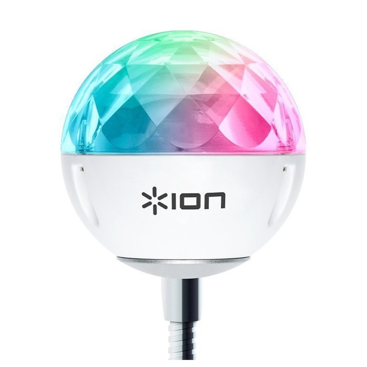 O ION Party Ball USB é uma luz altamente compacta e tátil com um LED de 3 cores que sincroniza com os sons da sala. O ION Party Ball é uma maneira acessível de levar iluminações divertidas para onde você for. A configuração de 3 cores foi projetada para preencher a sala com um show de luzes RGB. A luz possui um microfone embutido que sincroniza as luzes à sua música. Ele possui um braço de pescoço flexível dobrável para posicionamento ideal. A luz é totalmente alimentada USB, eliminando a necessidade de uma fonte de alimentação externa.