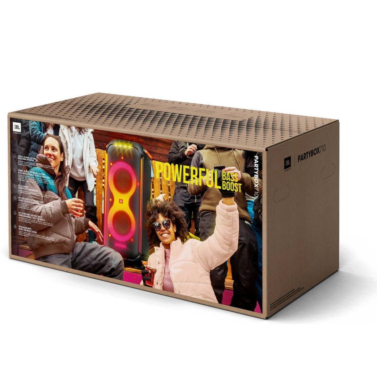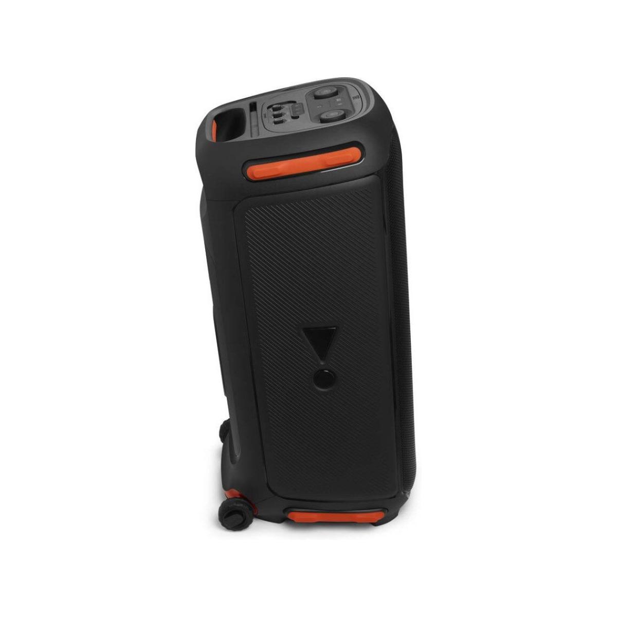 • Pega confortável e rodas robustas. Leve a festa consigo graças às rodas grandes, robustas e suaves e à pega confortável, que lhe permitem transportar e colocar convenientemente a JBL PartyBox 710 em qualquer lugar. *É necessária uma entrada AC. ;