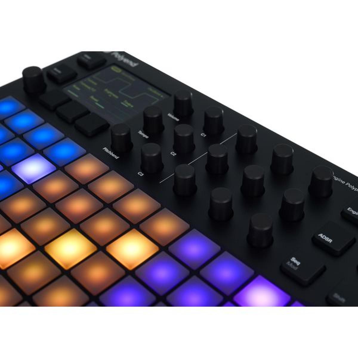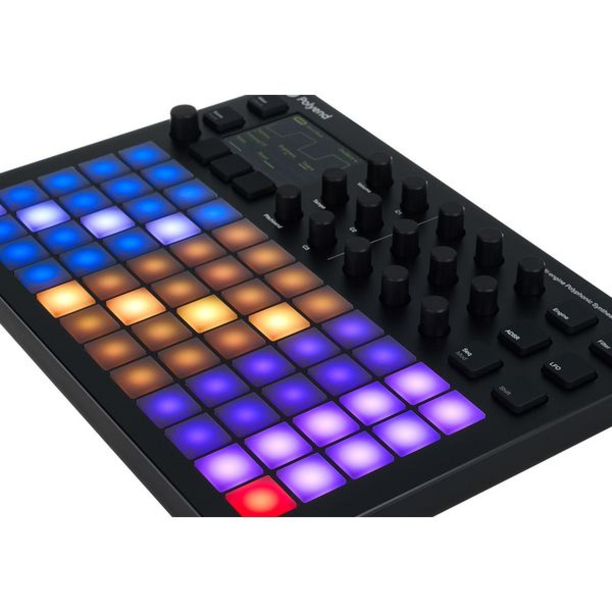 • Reprodução simultânea intuitiva das três vozes de sintetizador graças ao sequenciador integrado, arpejadores e grelha inteligente ;