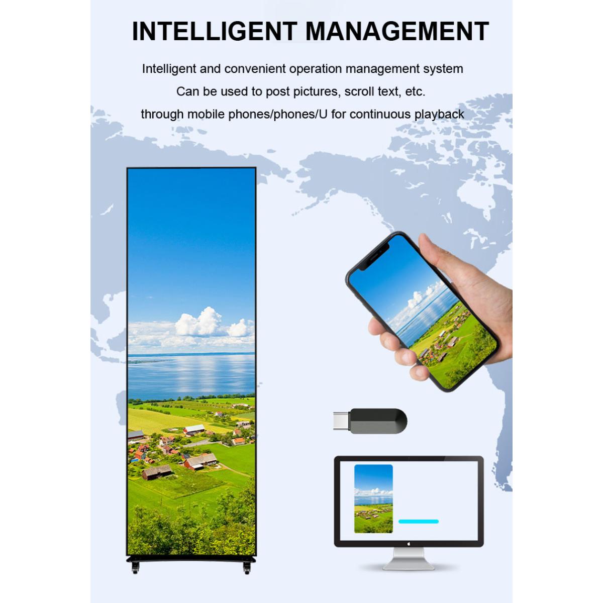 Com um pixel de 2.5 mm, este display garante imagens nítidas e detalhadas mesmo a curta distância, enquanto a elevada taxa de atualização assegura vídeos fluidos e sem cintilação. O formato vertical tipo poster adapta-se perfeitamente a montras, receções, lojas e eventos, proporcionando máxima visibilidade e impacto.