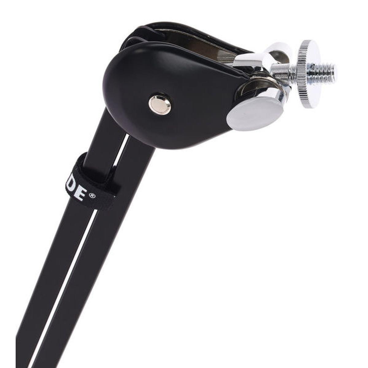 O braço do estúdio PSA1 possui um design de 360 graus, permitindo que você encontre a posição perfeita para o seu microfone. Isso pode ser útil em situações de podcast e transmissão quando o posicionamento do microfone é rápido. Ele fornece um alcance horizontal de 820 mm e um alcance vertical de 840 mm. Ele também é fornecido com presilhas de cabo de velcro, um grampo de mesa e uma inserção de mesa para opções de montagem flexíveis. O braço do estúdio PSA1 foi projetado para uso com os microfones Rode Procaster e Podcaster, mas também pode suportar vários outros microfones com peso entre 700g e 1,1kg.