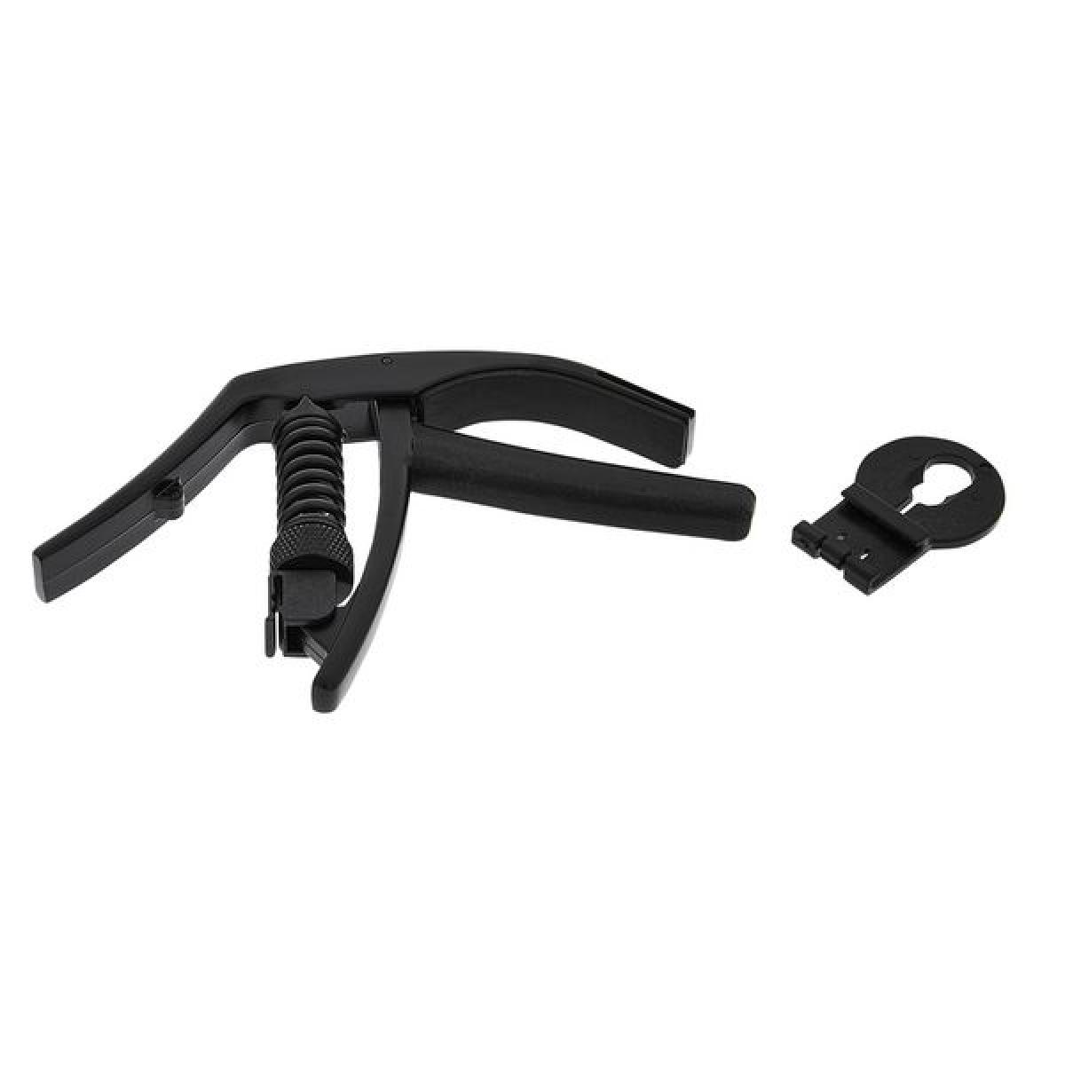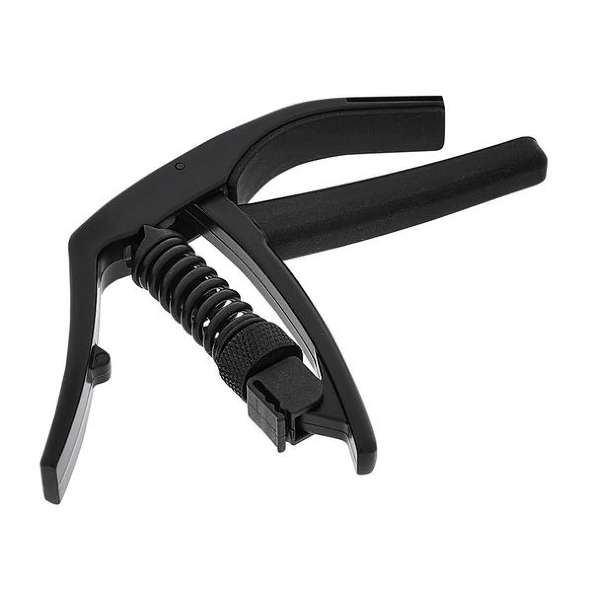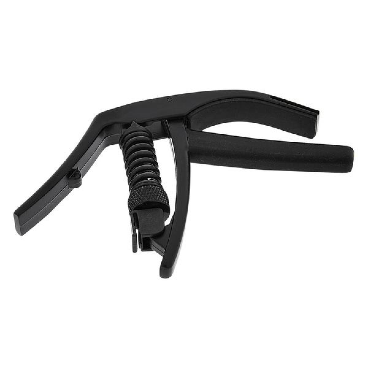 O Artist Capo utiliza uma geometria patenteada Tri-Action que reduz a força necessária para abrir e fechar o capo, aplicando uma tensão uniforme independentemente do perfil do braço. Combinado com o ajuste de tensão micrométrico e a pressão horizontal direta, o Artist Capo praticamente elimina a necessidade de puxar as cordas de um lado para o outro e a necessidade de afinar novamente durante a utilização. Para além disso, o design em estilo de gatilho e a construção leve em alumínio não adicionam qualquer obstrução ou peso percetível ao braço do instrumento. O Artist Capo inclui um suporte de suporte de palheta, um suporte de montagem de micro afinador, permitindo-lhe adicionar capacidades de afinação ao capo. Afinador vendido separadamente. Concebido em colaboração com Ned Steinberger