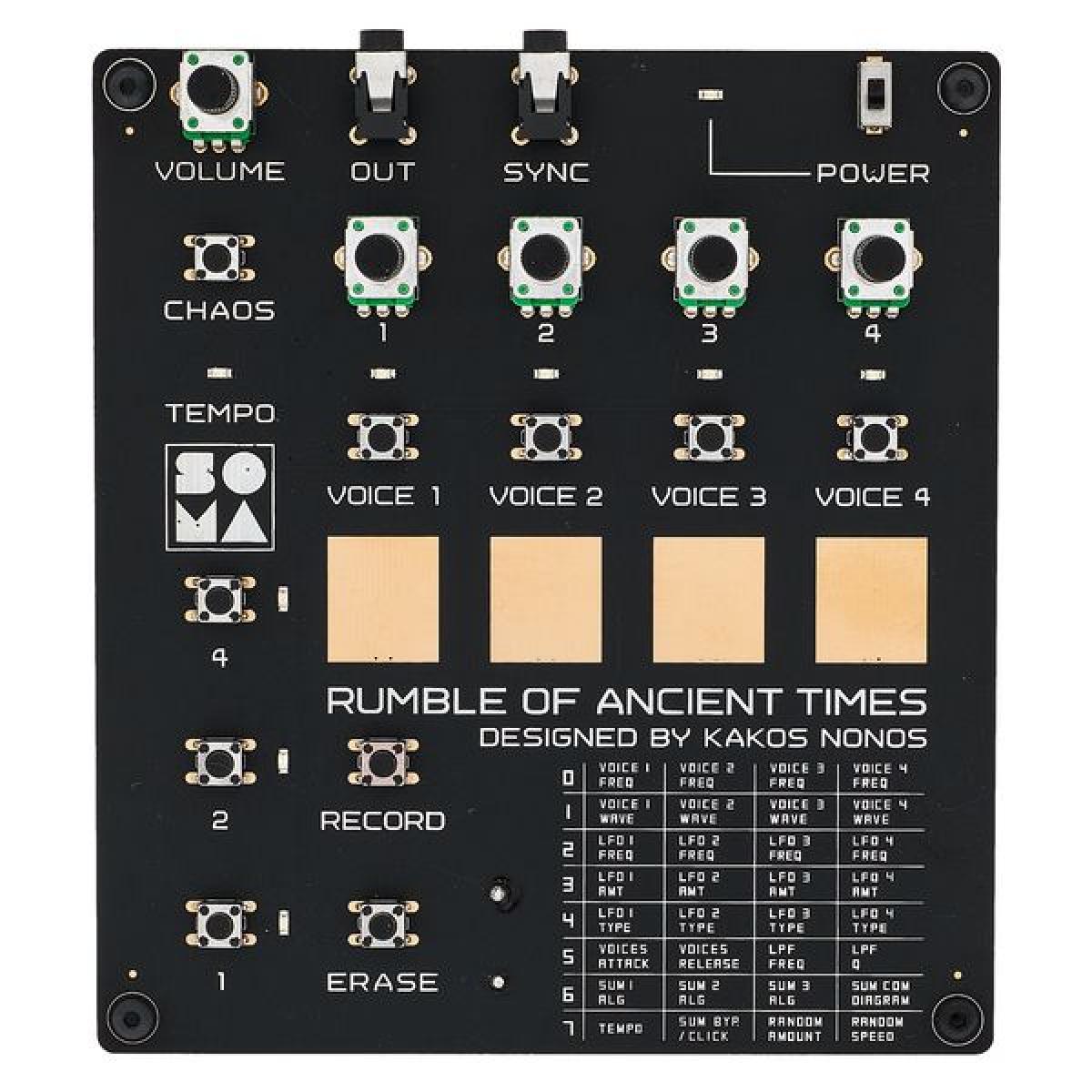 • Misturador de osciladores configurável com 8 algoritmos de soma selecionáveis (FM, adição, subtração, waveshaper, modulador de anel e mais) ;