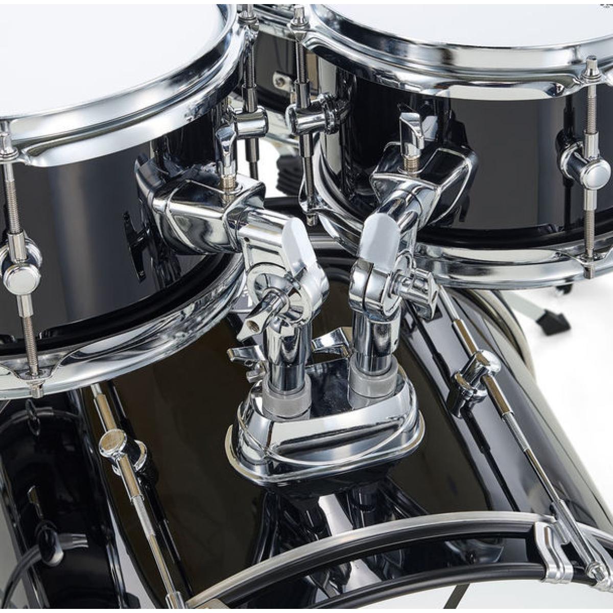 Não se contente com os brinquedos ou com as mãos. Comece com algo que inspire criatividade e aprendizado. A series Roadshow da Pearl é ideal para jogadores que procuram começar a aprender num instrumento fiável e durável, oferecendo um tom e capacidade de jogo incríveis por um preço muito acessível. O kit de bateria completo Pearl Roadshow Junior 5pc é compacto e fácil de configurar em casa. Para um kit pequeno, soa muito bem e tem um punch real - o tipo de som de qualidade que incentiva o aprendizado adicional. Este kit é equipado com hardware chrome e um elegante acabamento em Jet Preto, proporcionando um visual estiloso para combinar com suas beats .