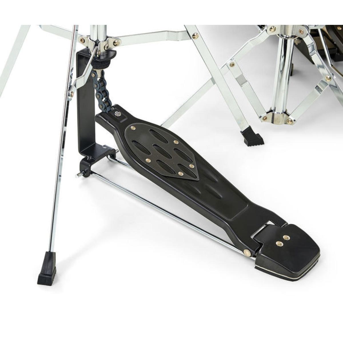 • Inclui bateria, címbalos, trono de bateria, pedais, pedestais e baquetas