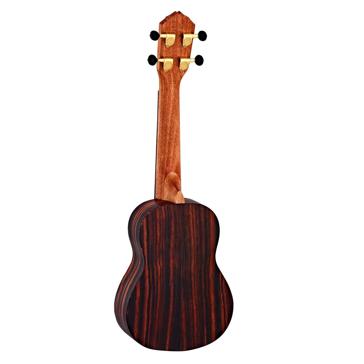 É instantaneamente reconhecível e ideal para jogadores que desejam aquele som clássico de uke. A forma soprano promete qualidades sonoras estridentes e cristalinas, o que significa que você terá uma autenticidade impressionante tanto na aparência quanto no tom. E graças ao seu tamanho pequeno, o soprano uke é extremamente confortável de tocar e perfeito para levar na estrada.