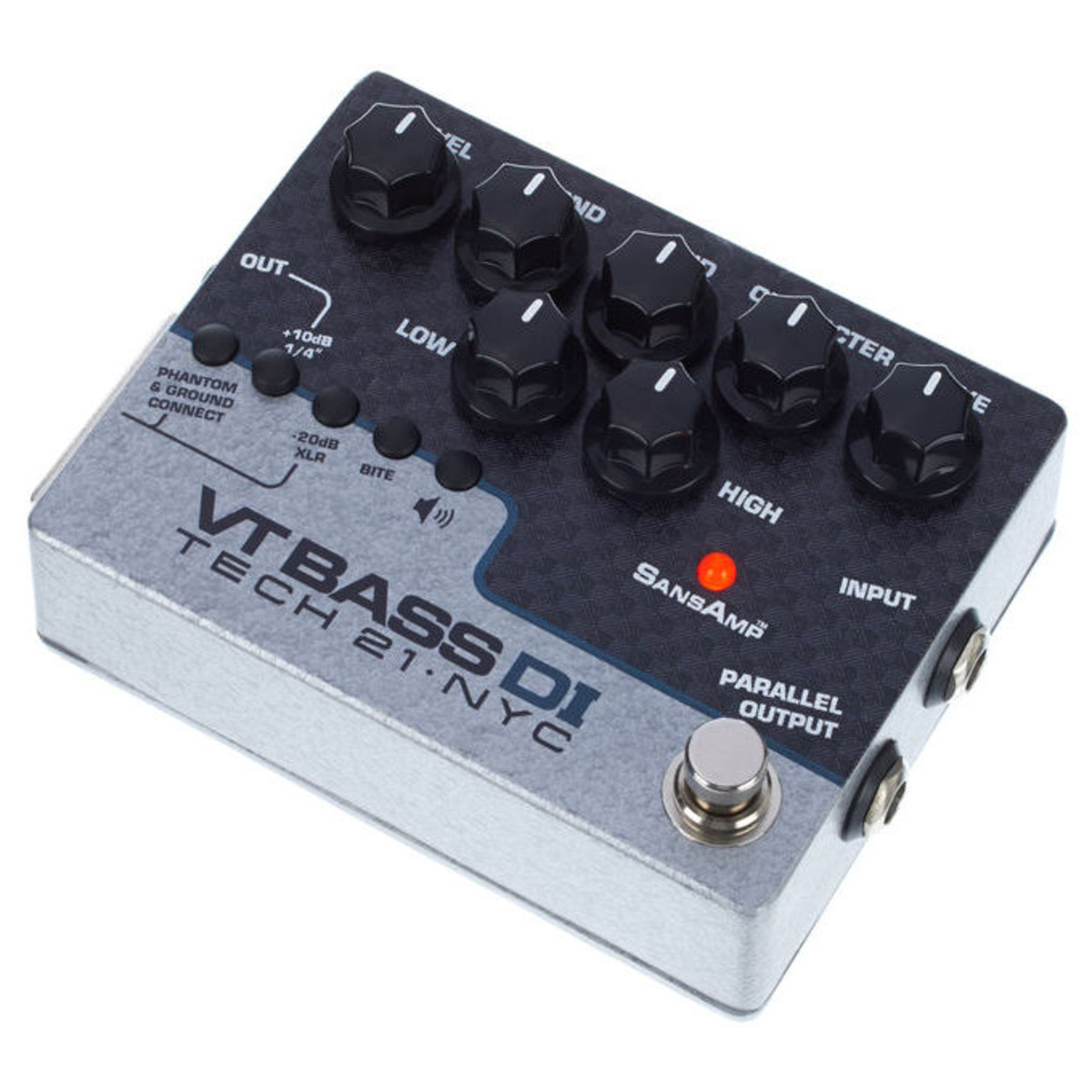 O Tech 21 SansAmplificador Character Series VT Bass DI é um pedal multi-funções e multi-aplicações que apresenta três saídas. O pedal pode complementar o seu equipamento pré-existente, gravar directamente, conduzir amplificadores de potência e passar directamente através do PA. A peça de equipamento perfeita para o baixista itinerante que dá prioridade à facilidade de acesso e a uma configuração fácil e directa, o Tech 21 VT Bass DI está pronto para o gig gigante ao cair de um chapéu.