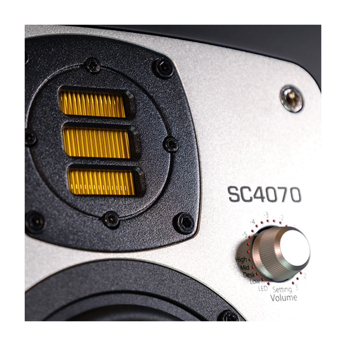 O SC4070 apresenta um tweeter avançado / seção de faixa média e aumenta a capacidade de reproduzir baixas frequências com dois woofers de 6,5 “conectados a um conjunto de amplificador muito poderoso. Os woofers duplos permitem reduzir a distorção mesmo em SPL alto e oferecem uma reprodução de graves homogênea e precisa e uma resposta geral bastante linear.