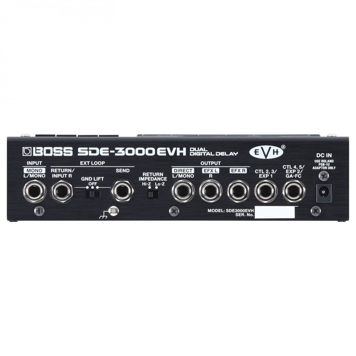 O Boss SDE-3000EVH Dual Digital Delay é uma nova e excitante entrada na linha Boss' FX, que os fãs dos Van Halen vão adorar! Este pedal é uma reprodução fiel da famosa configuração dupla Roland SDE-3000 do Eddie, completa com as suas icónicas riscas EVH e carregada com as suas predefinições. Com uma entrada e três saídas, este pedal proporciona uma rara configuração de três amplificadores que é perfeita para aqueles que querem recriar o som delay espacial do Eddie. A impedância de retorno seleccionável assegura que pode combinar o pedal com o seu amplificador para uma qualidade de som óptima.