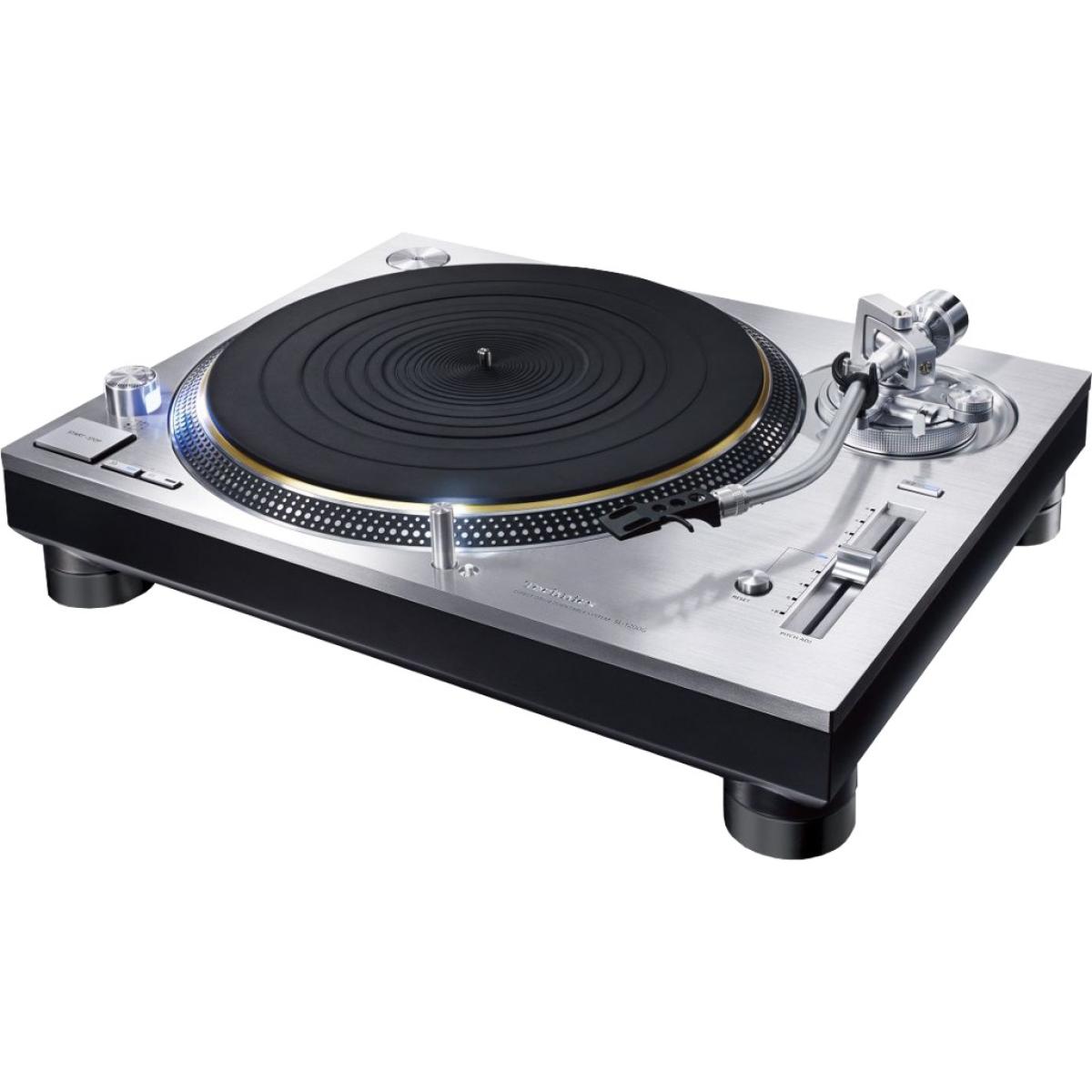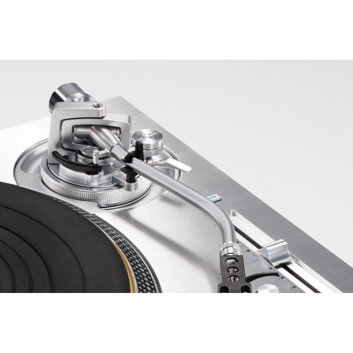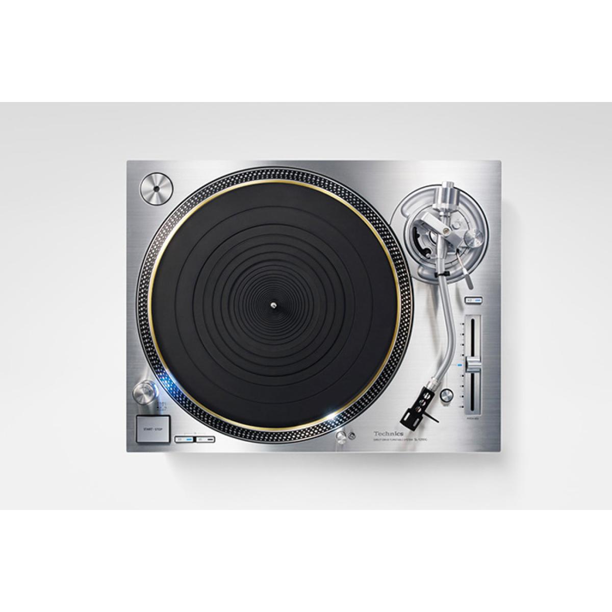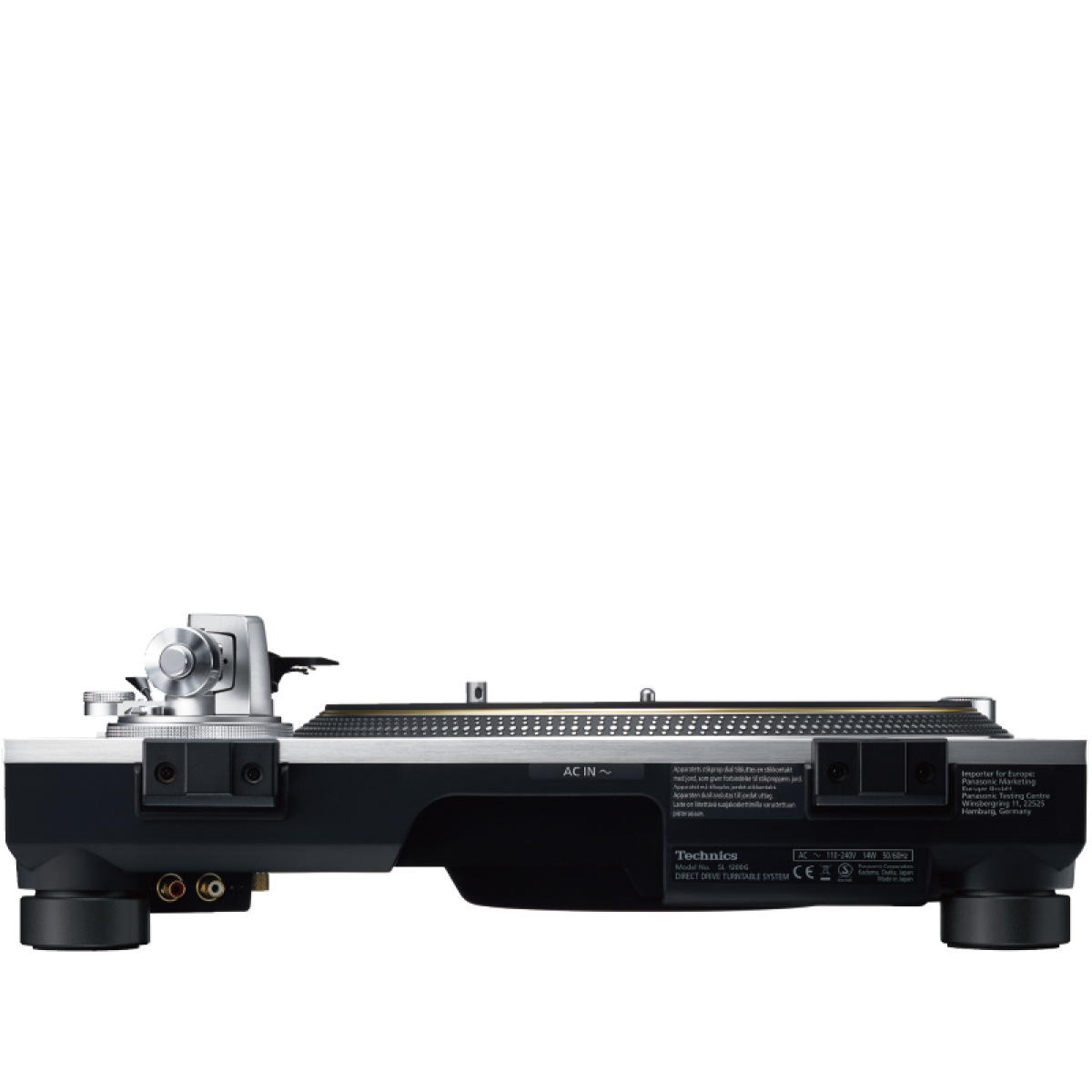 • O toca-discos de acionamento direto padrão Grand Class Technics possui motores de acionamento direto girados para uma superfície de rotor duplo, um controlador de motor de acionamento direto, um braço de tom de alta sensibilidade e um isolador de placa rotativa com uma almofada de latão.