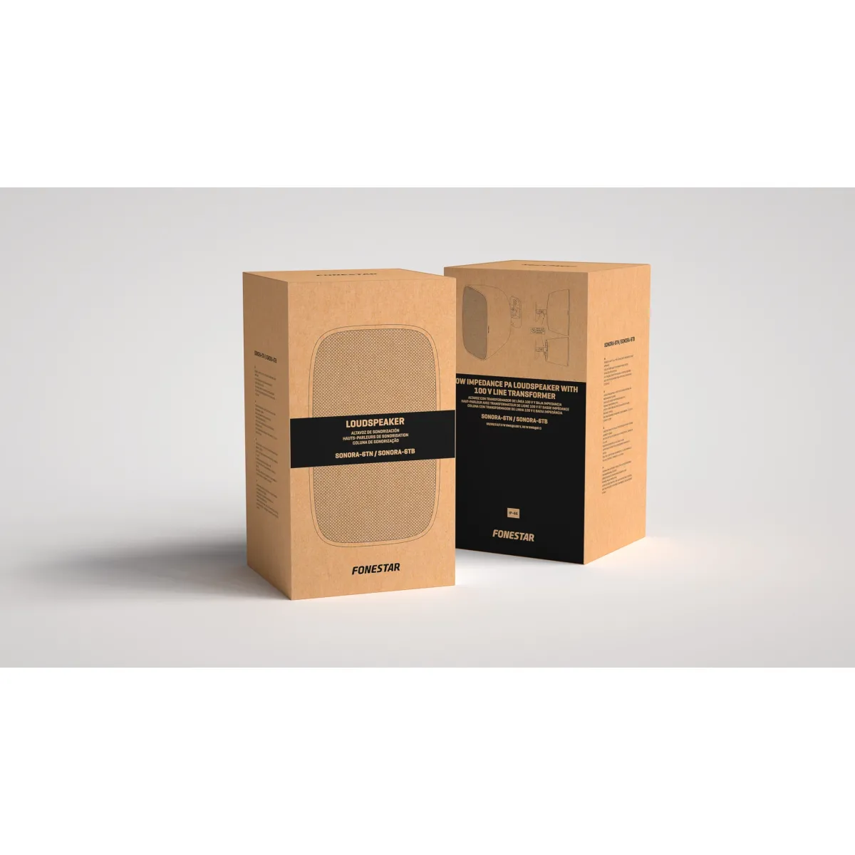 Coluna de superfície Fonestar SONORA‑6TB com transformador de linha 100 V e opção de baixa impedância, projetada para sonorização ambiente interior e exterior com proteção IP‑66 e instalação simples.