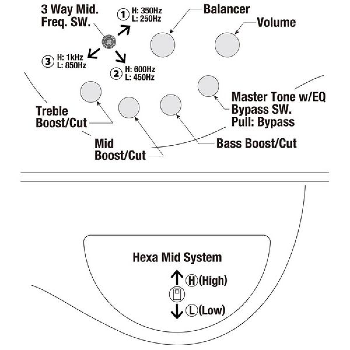 • Pré-amplificador Ibanez Sonitech com EQ de 3 bandas ;