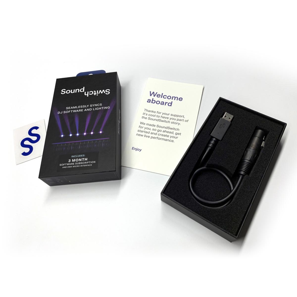 Elegante e simplificado. A interface SoundSwitch Micro DMX foi projetada para fornecer a você menos uma coisa com que se preocupar durante o seu set de DJ. A durabilidade e a configuração intuitiva do Micro DMX fizeram da marca SoundSwitch a favorita entre os DJs profissionais. O Micro DMX permite conectar seu universe DMX ao seu sistema operativo através de uma única conexão USB. Sim, você leu certo, uma única conexão USB. Longe vão os dias de arranjos desajeitados e emaranhados. Depois de conectar sua música, a iluminação funcionará em perfeita harmonia. Também está incluída uma assinatura gratuita de três meses do SoundSwitch.