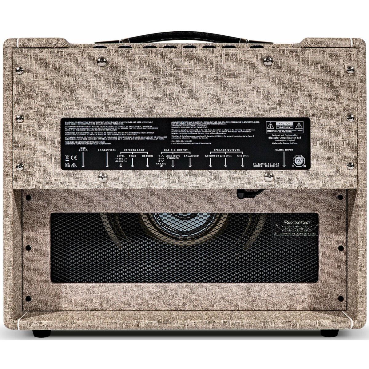 • Material de cobertura de tolex castanho claro e cestaria preta