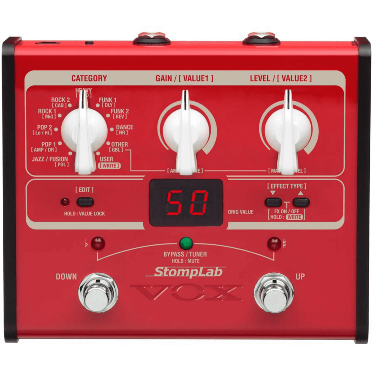 O Pedal de Efeitos de Baixo Vox StompLab SL1B integra uma poderosa e expressiva gama de efeitos orientados a graves num compartimento compacto e resistente. Existem vários estilos de variações de som, como rock, blues e balada, com uma interface fácil de usar para usuários iniciantes.
