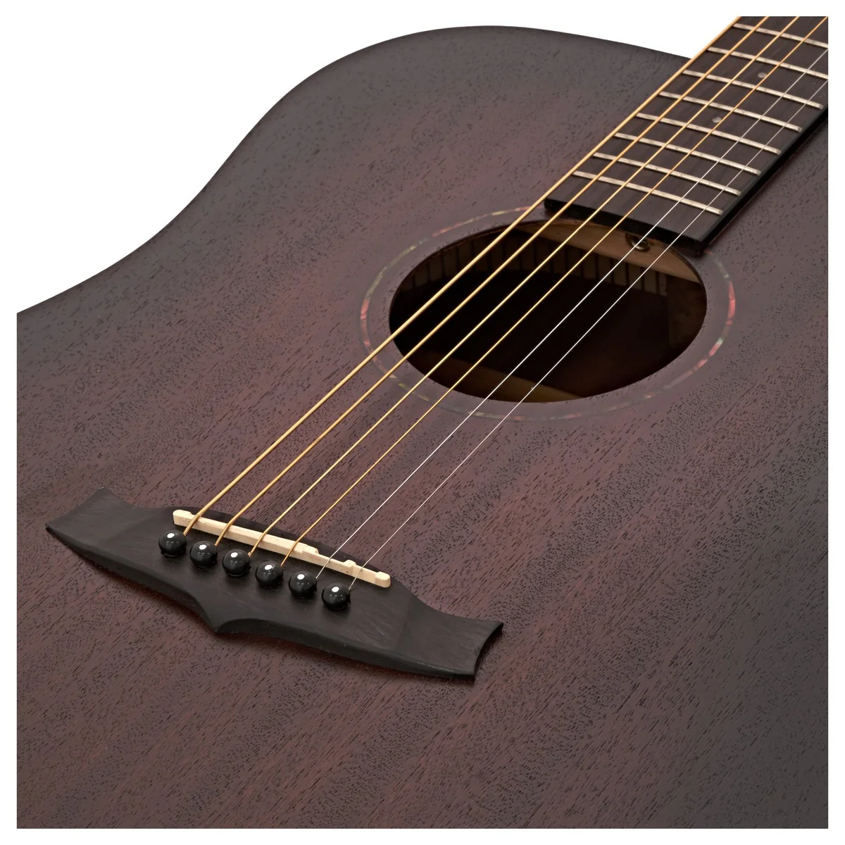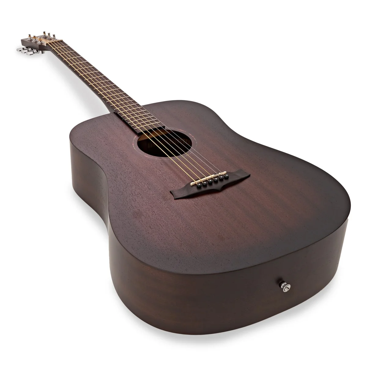 A Tanglewood TWCR-D Crossroads é uma guitarra acústica dreadnought com construção totalmente em mogno, concebida para oferecer timbre quente e projeção acústica equilibrada. O acabamento Whiskey Barrel Burst Satin confere um visual vintage inspirado nos instrumentos clássicos americanos.