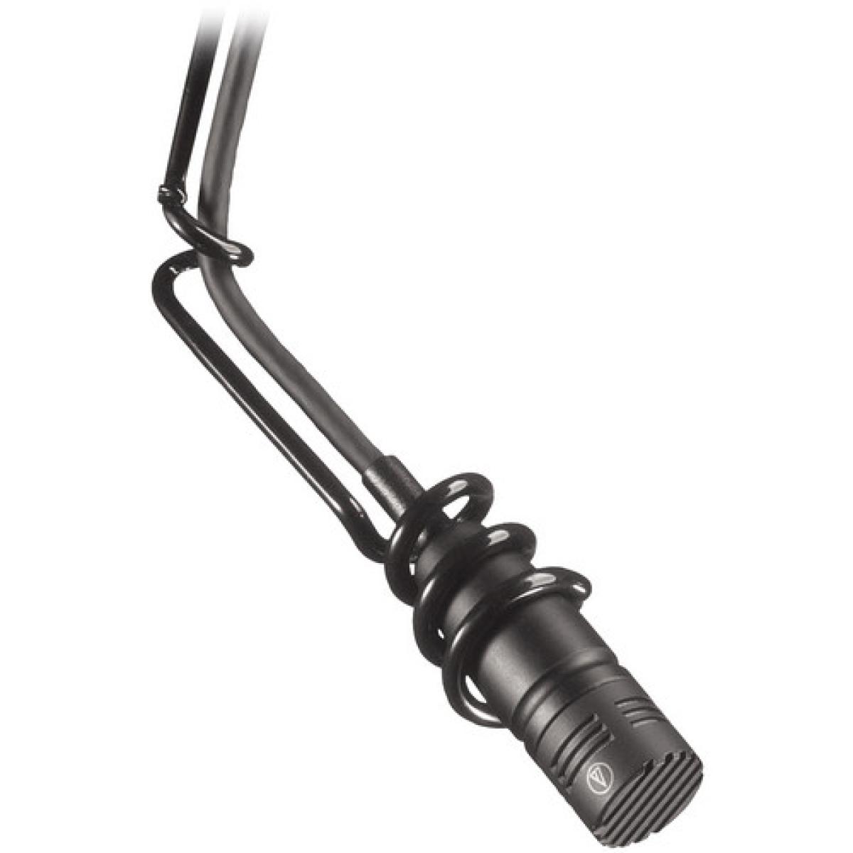 rom da série Audio-Technica UniPoint, o microfone suspenso U853R foi projetado para reprodução precisa de sinal em teatros, templos religiosos, salas de conferência, salas de diretoria, escolas, aplicativos de gravação profissional e muito mais. O U853R possui um suspensor de aço flexível que prende o cabo suspenso e a cápsula, permitindo fácil colocação do microfone sem excesso de hardware.