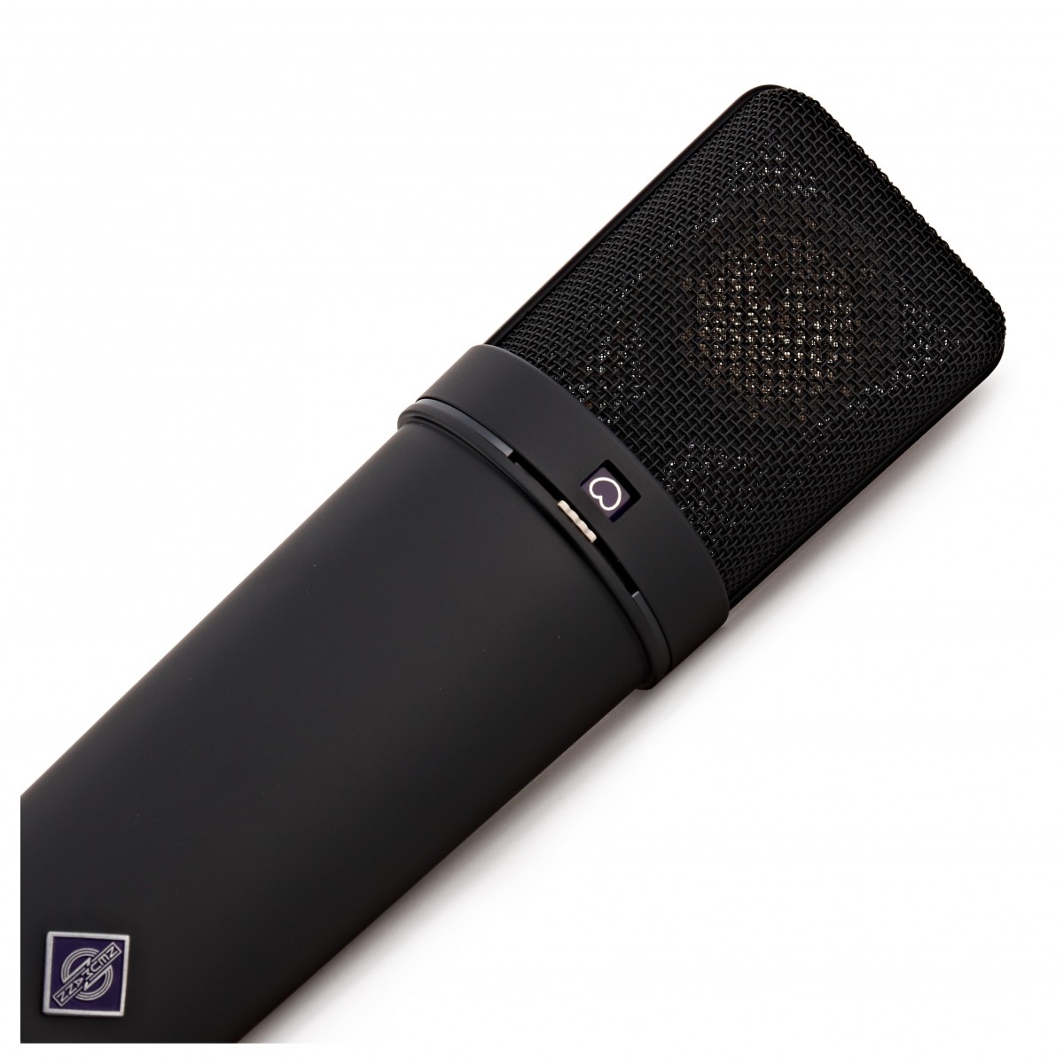 A cápsula de duplo diafragma é montada num suporte elástico e envolvida por uma grade de proteção. Um seletor abaixo da grade seleciona 3 padrões direcionais: omnidirecional, cardióide e figura-8. Uma janela acima deste seletor mostra o símbolo da característica selecionada.
