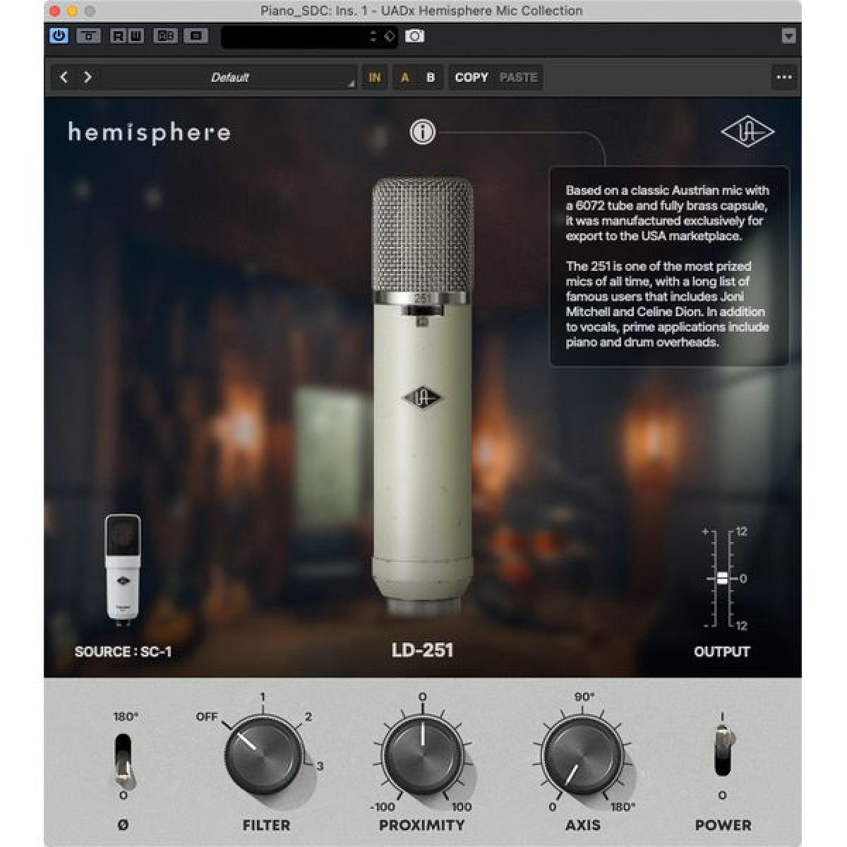 • Equalização controlada pelo plug-in Hemisphere com controlos de filtro, proximidade e eixo (mesmo após a gravação)