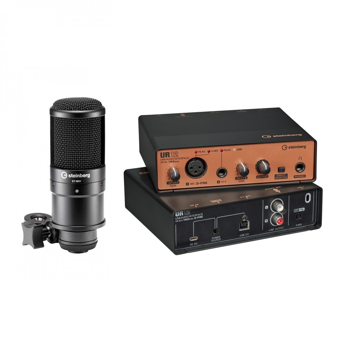 O Steinberg UR12 Podcast Starter Kit é um pacote abrangente para a criação de podcasts. Composto pela interface de áudio USB UR12 com um novo acabamento em preto e cobre, um microfone condensador ST-M01 para gravação vocal e um suporte de mesa, filtro pop e cabo, este pacote inicial oferece tudo o que precisa para ligar e começar a gravar. Perfeito para aplicações além do podcast, o pode ser usado para todos os tipos de criação de conteúdo, como narração para vídeos e cursos de e-learning, streaming ou como numa configuração compacta de gravação móvel para vlogs.
