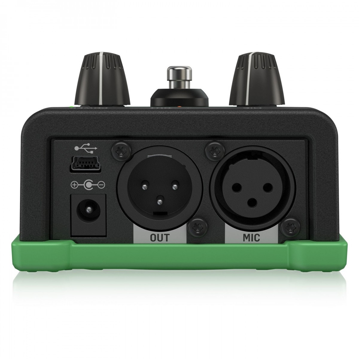 • Conectores: Sym. XLR, porta USB (para ligação à aplicação VoiceSupport para dicas, truques e actualizações), ligação Mic-Control (efeito ligado/desligado através do microfone TC-Helicon MP-75)