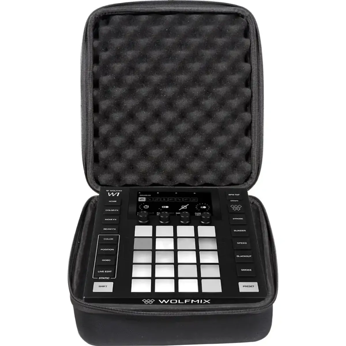Flight case rígido Walkasse W‑MCB‑WOLFMIX em EVA Shockproof concebido para proteger e transportar de forma segura o equipamento DJ Wolfmix W1 MK2.