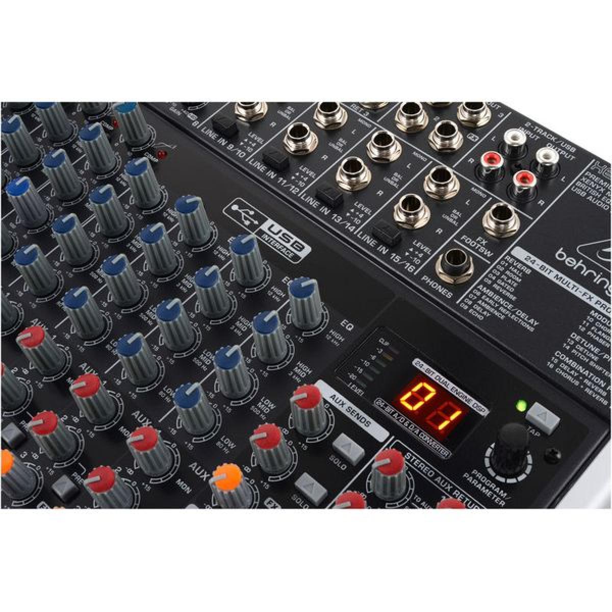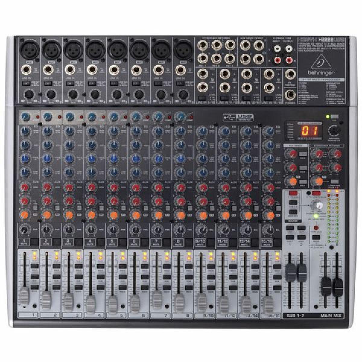 • EQ de 3 bandas com banda média paramétrica, compressor e insert em cada canal de microfone ;