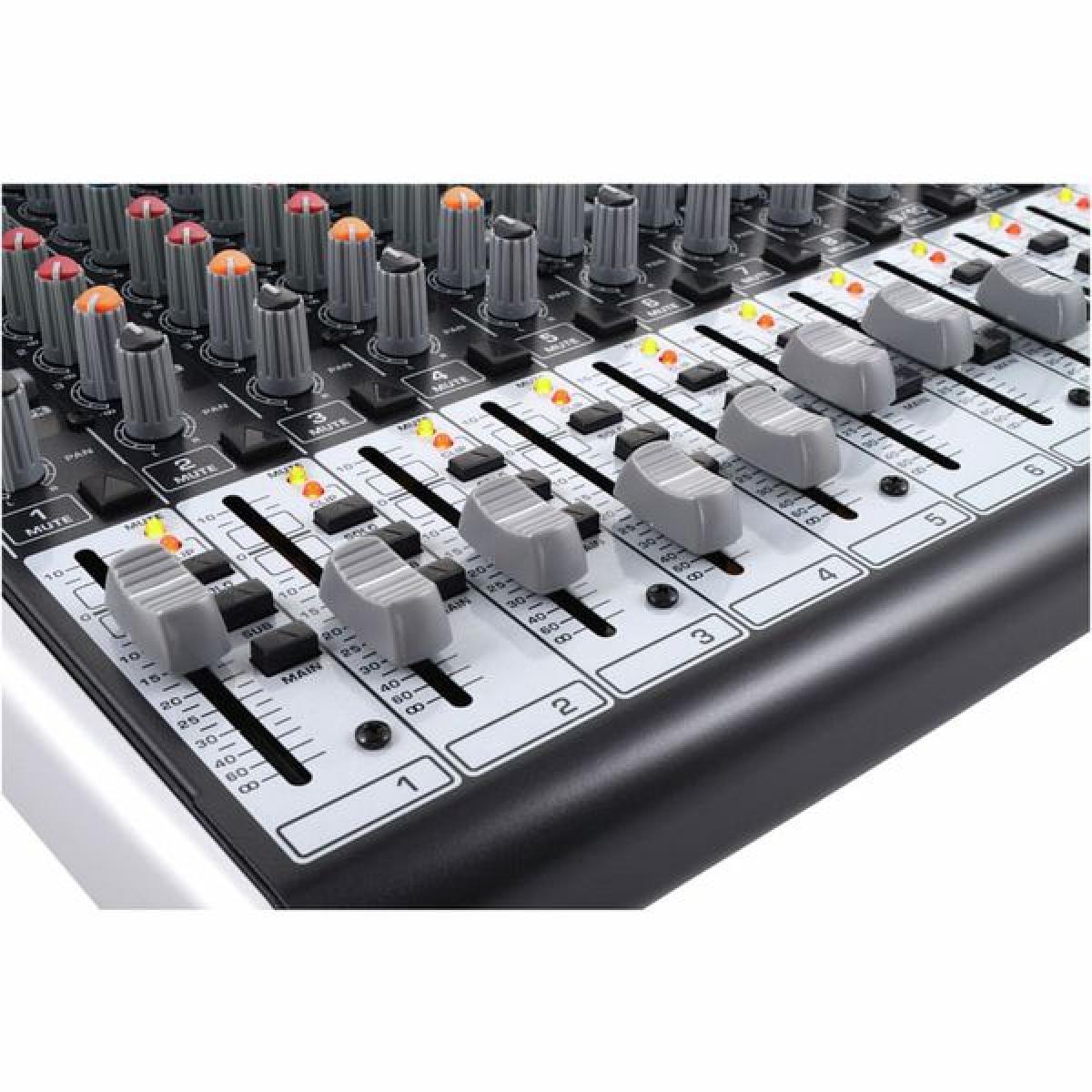 • 8 entradas de microfone com phantom power de +48 V e corte baixo de 75 Hz ;