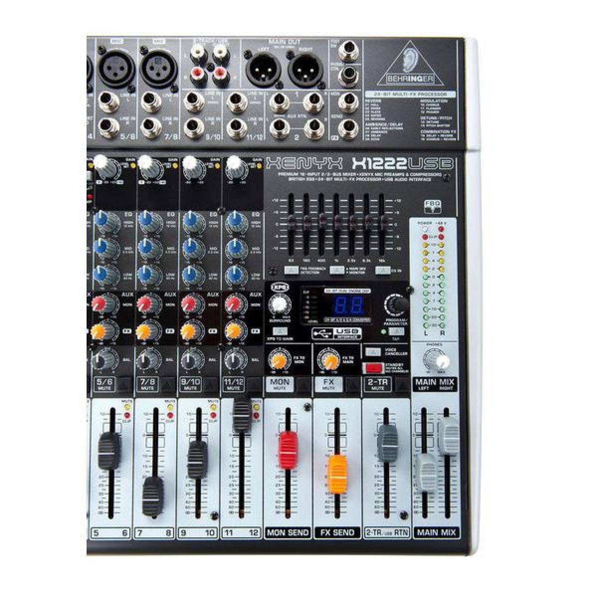 • Alimentação phantom de 48 Volts, compressor e corte baixo de 75 Hz para 4 canais de microfone ;
