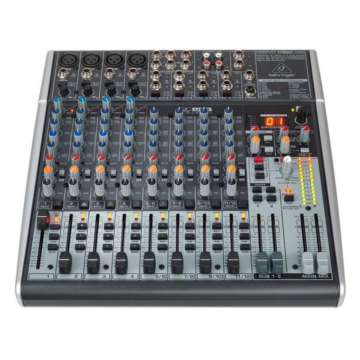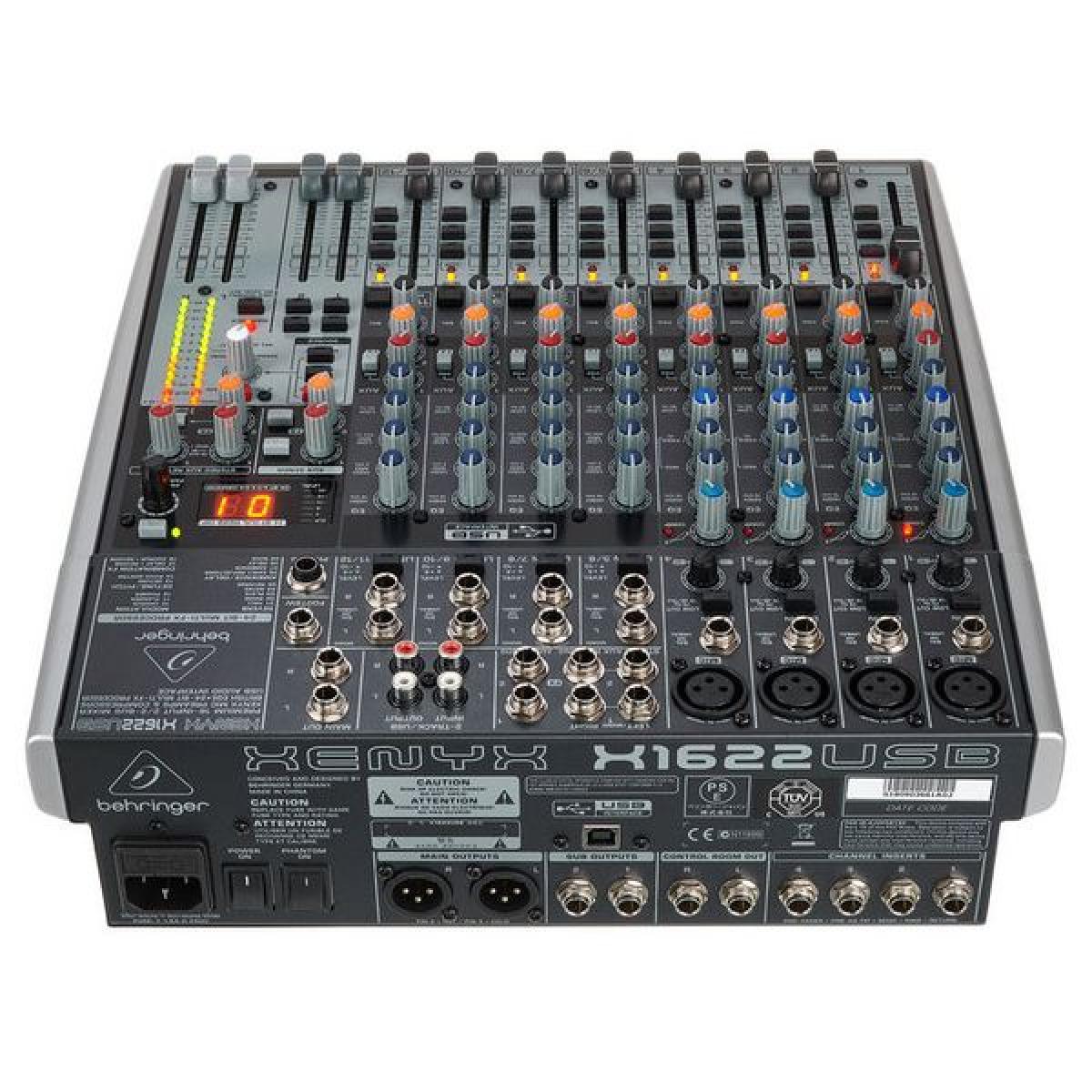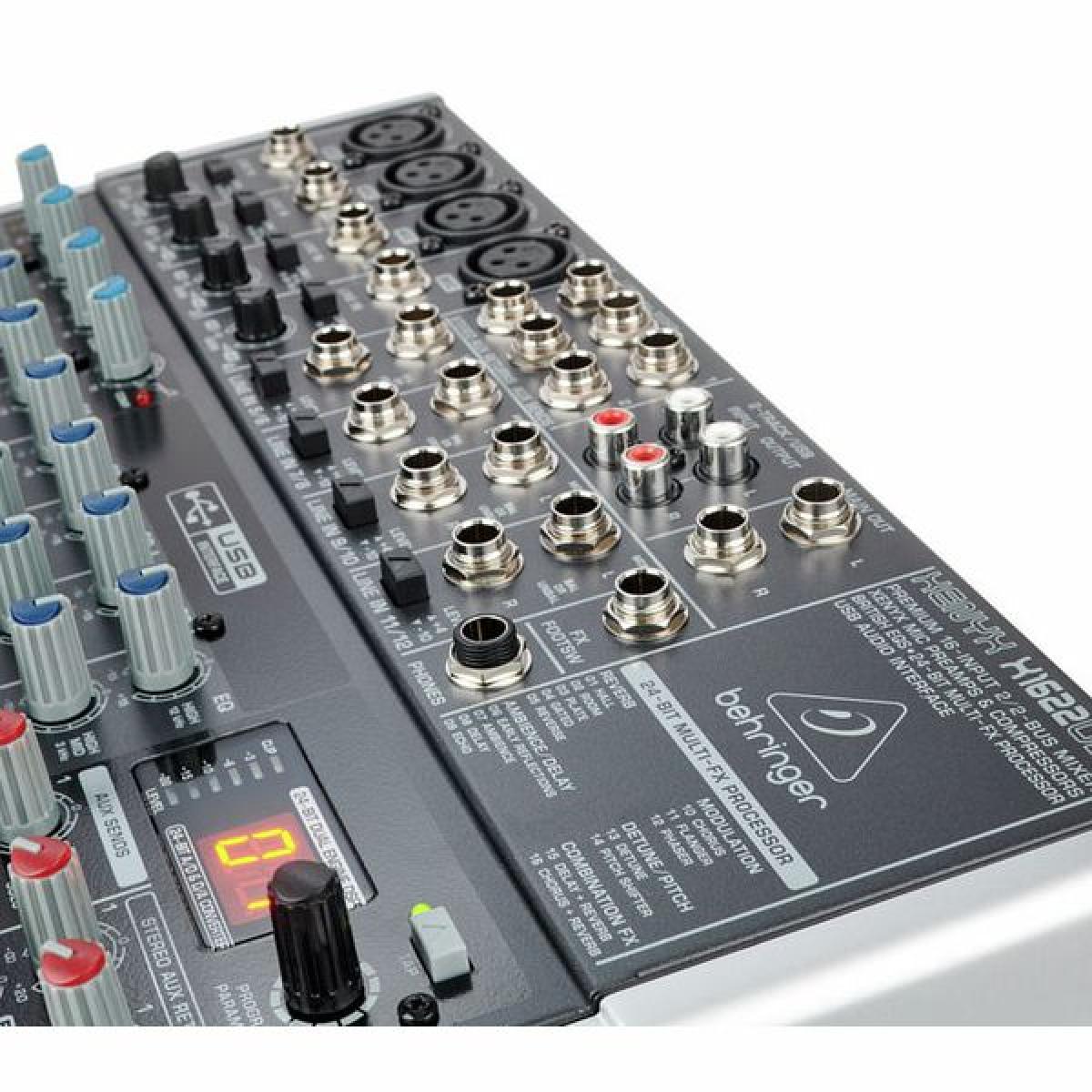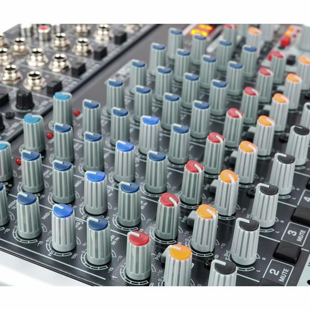 • 4 entradas de microfone com alimentação fantasma de 48 V, corte baixo de 75 Hz, compressor, EQ de 3 bandas com médios paramétricos e insert ;