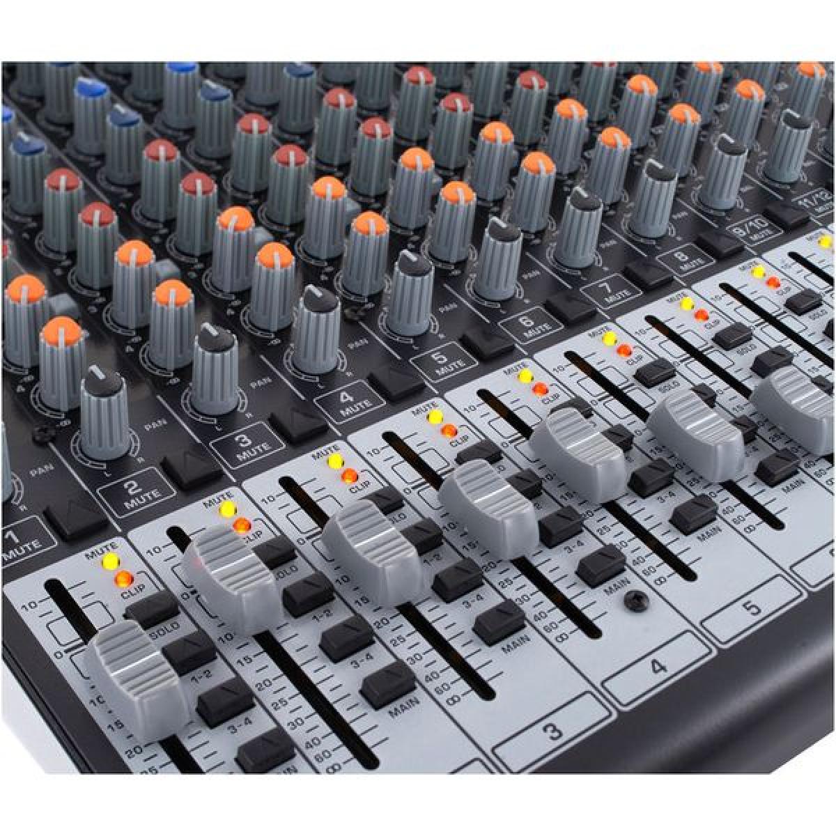 • 10 entradas de microfone com alimentação phantom de 48 V e corte baixo de 75 Hz ;